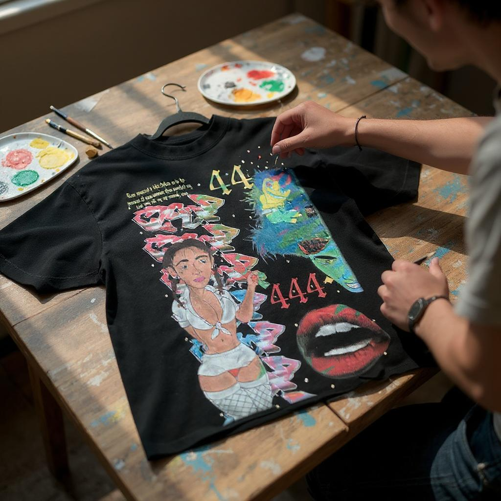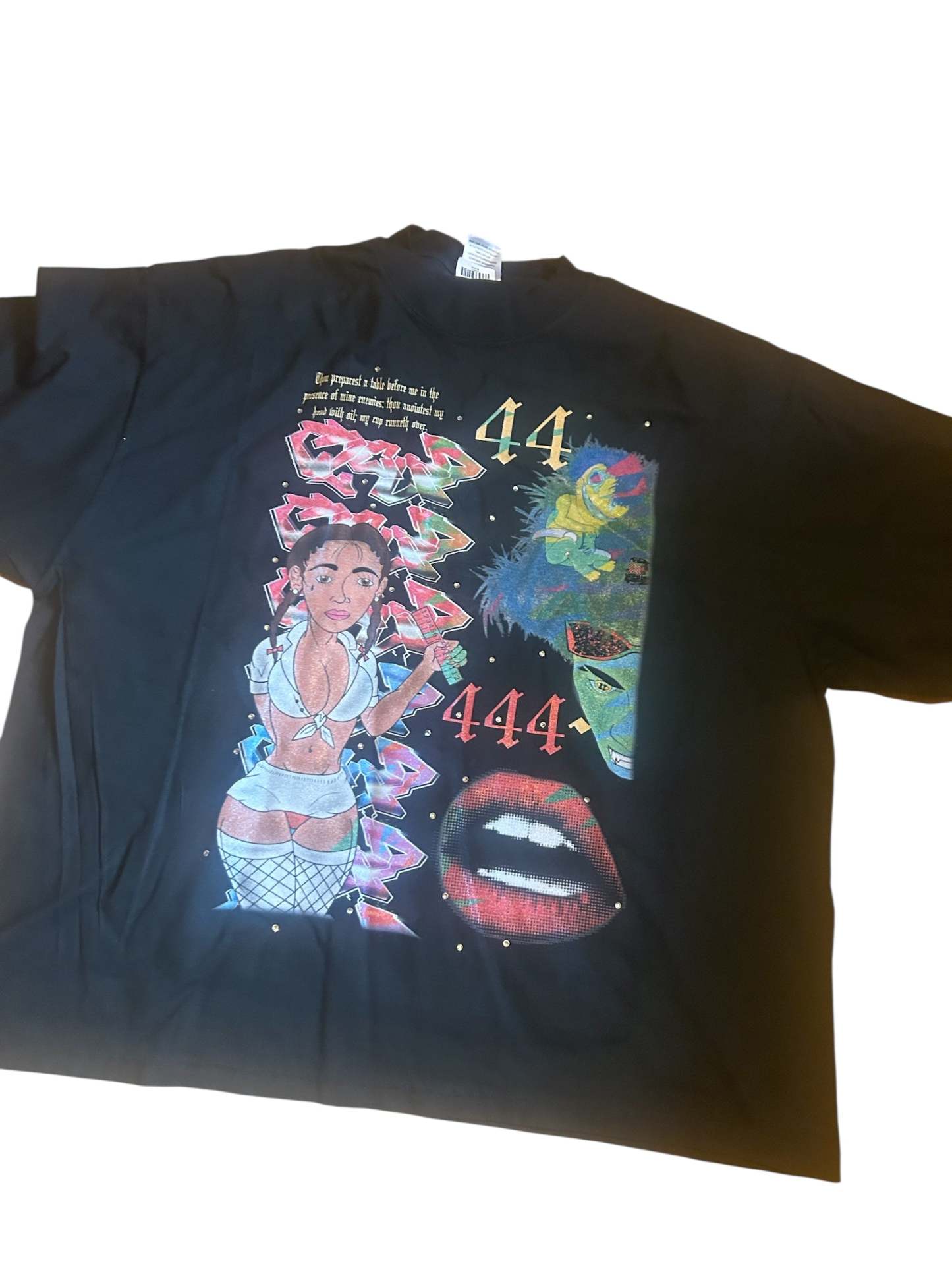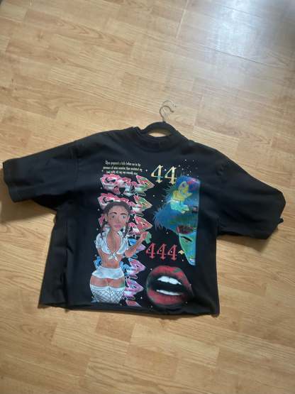 44. Black Angels T-shirt 44 black Tee shirt oversize drop shoulder, high-quality graphic ter shirt with rhinestones