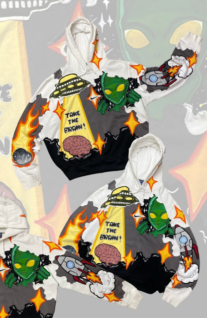 Aliens Take The Brain 3D Funny Hoodie