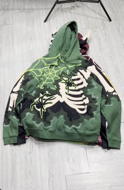 Forest Green Spider 3D Appliqué Casual Hoodie