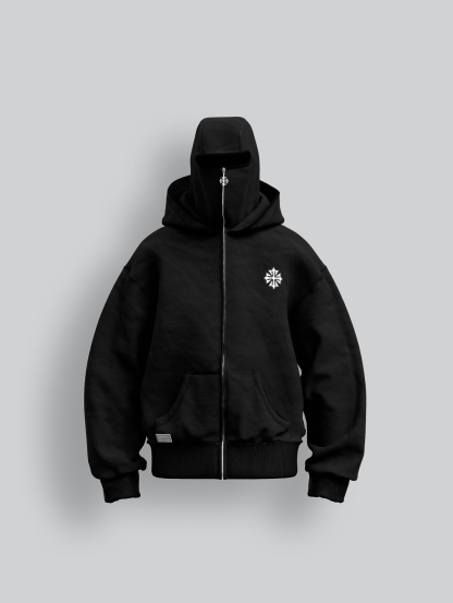 400 GSM65%cotton 35% polyesterBord côte épaisBroderie frontalePatch brodé logo Arntreal dans le dosCapuche + cagoule intégréePatch de connexion en siliconeZip avec logo signatureCoupe largeCouleur : Noir