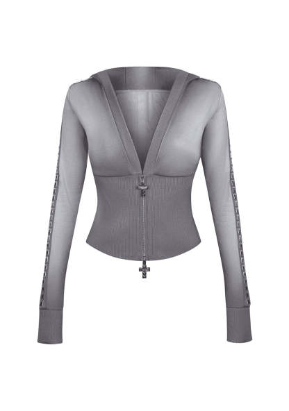 RUMOUR STUDDED FITTED ZIP HOODIE GRADIENT GREY