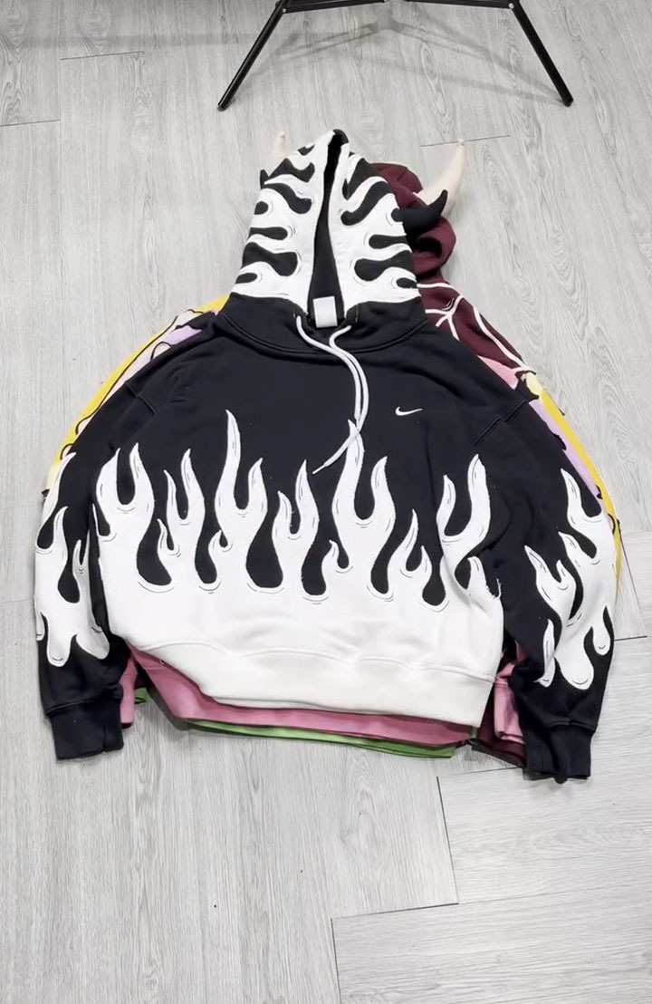 Black and White Color-block Flame Hoodie