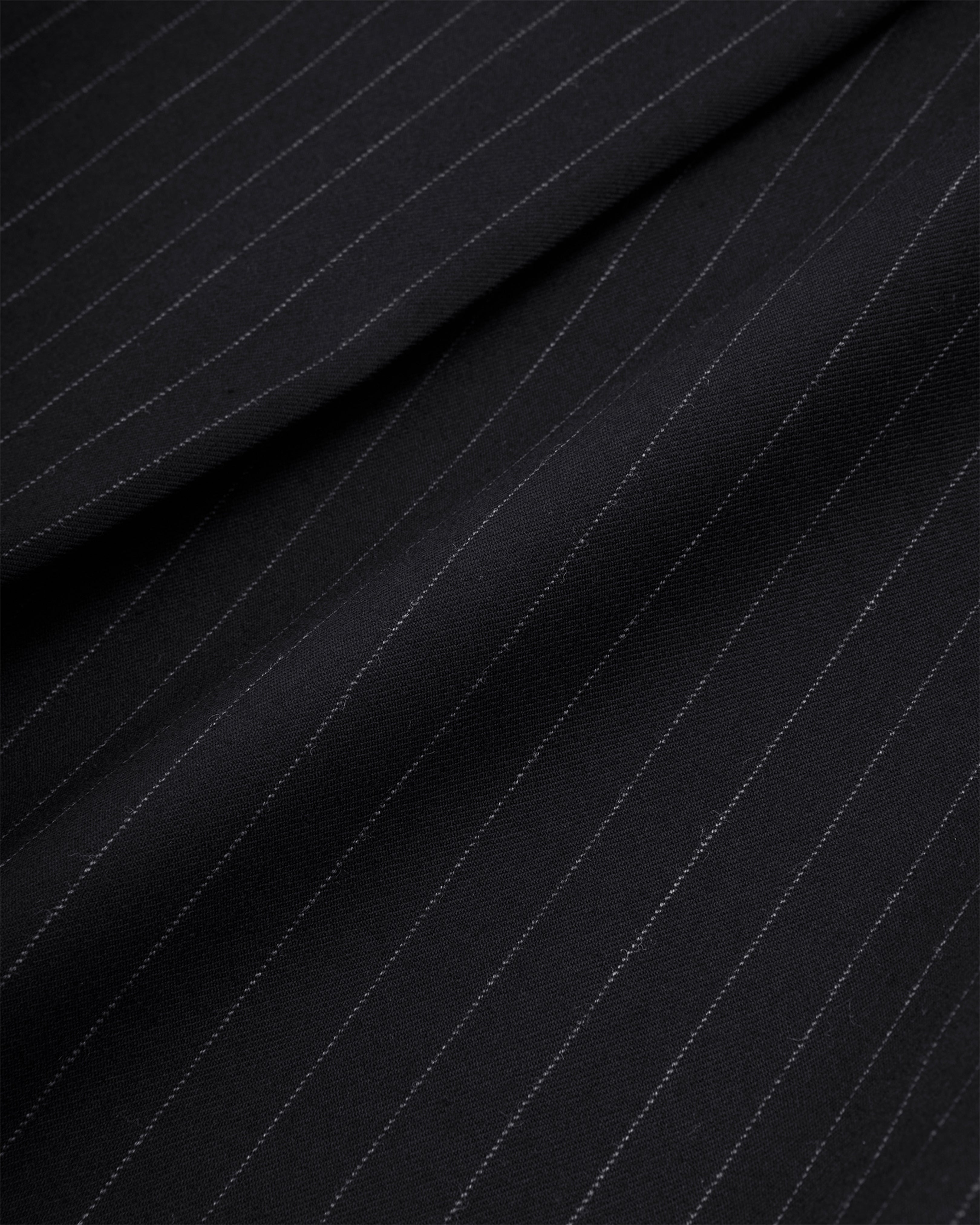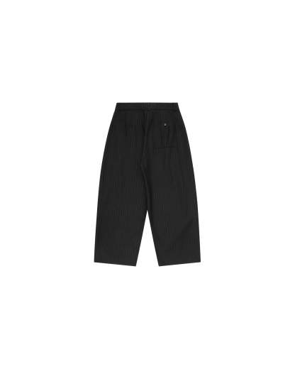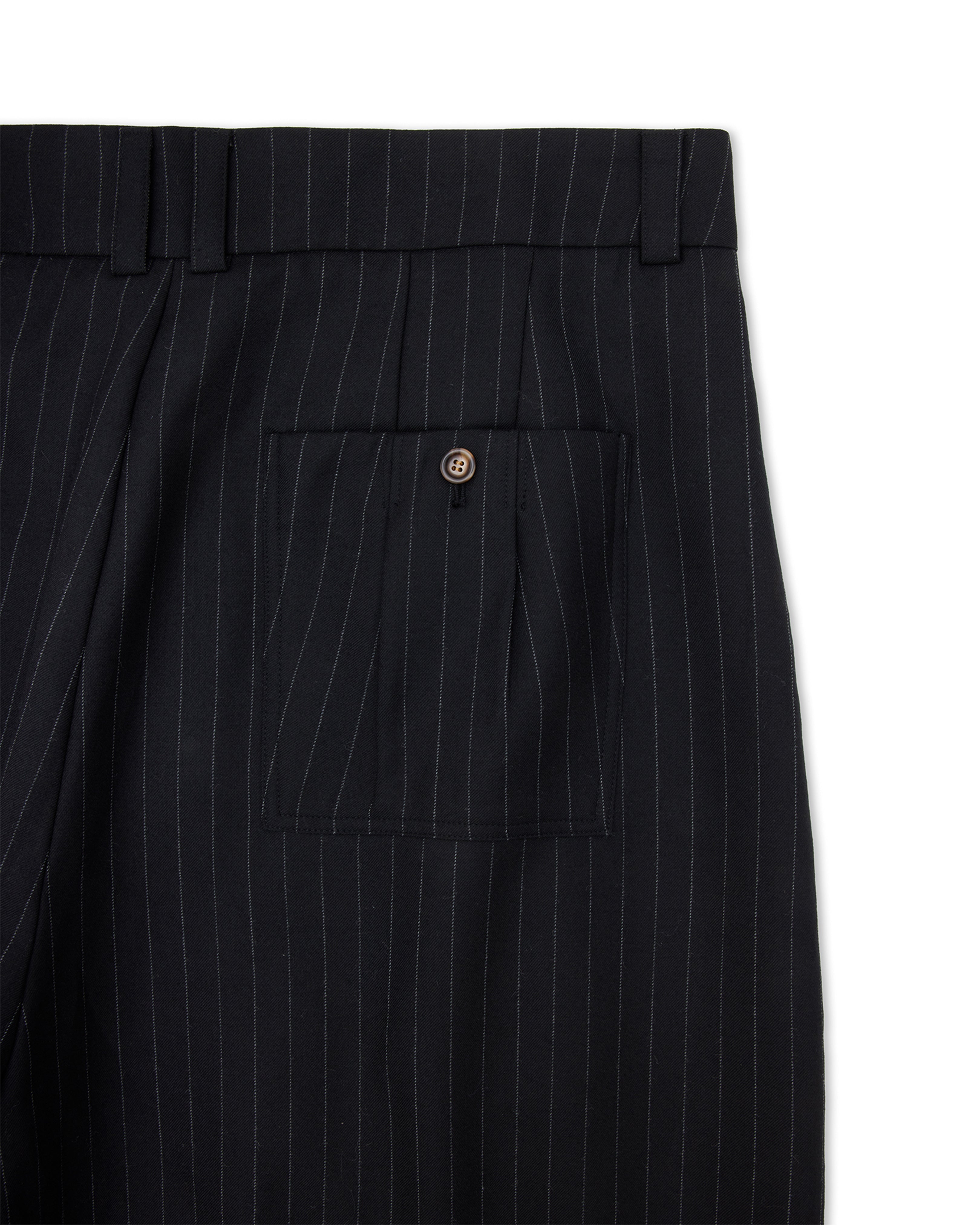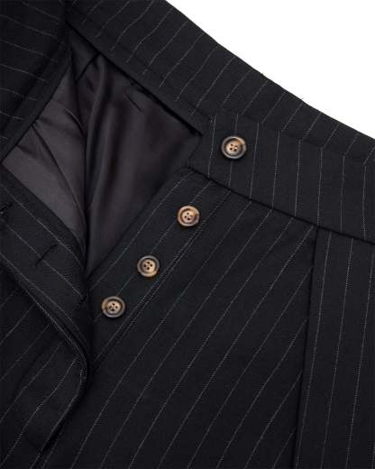 Sūtsu Diamond Pleated Wool Blend Black Pinstripe Trousers
