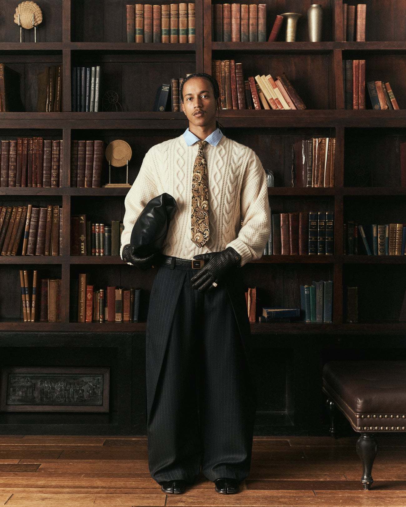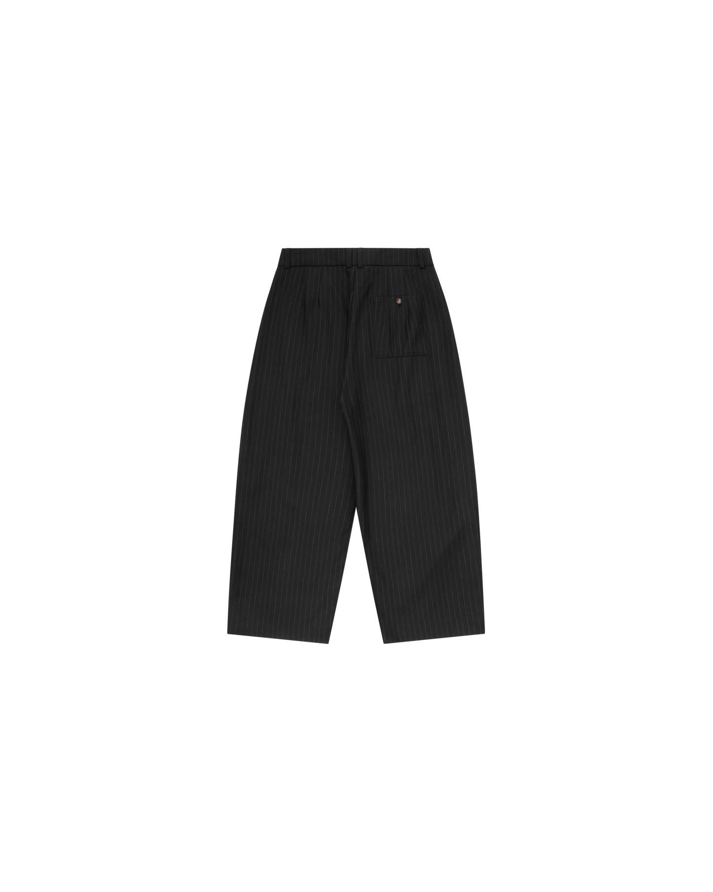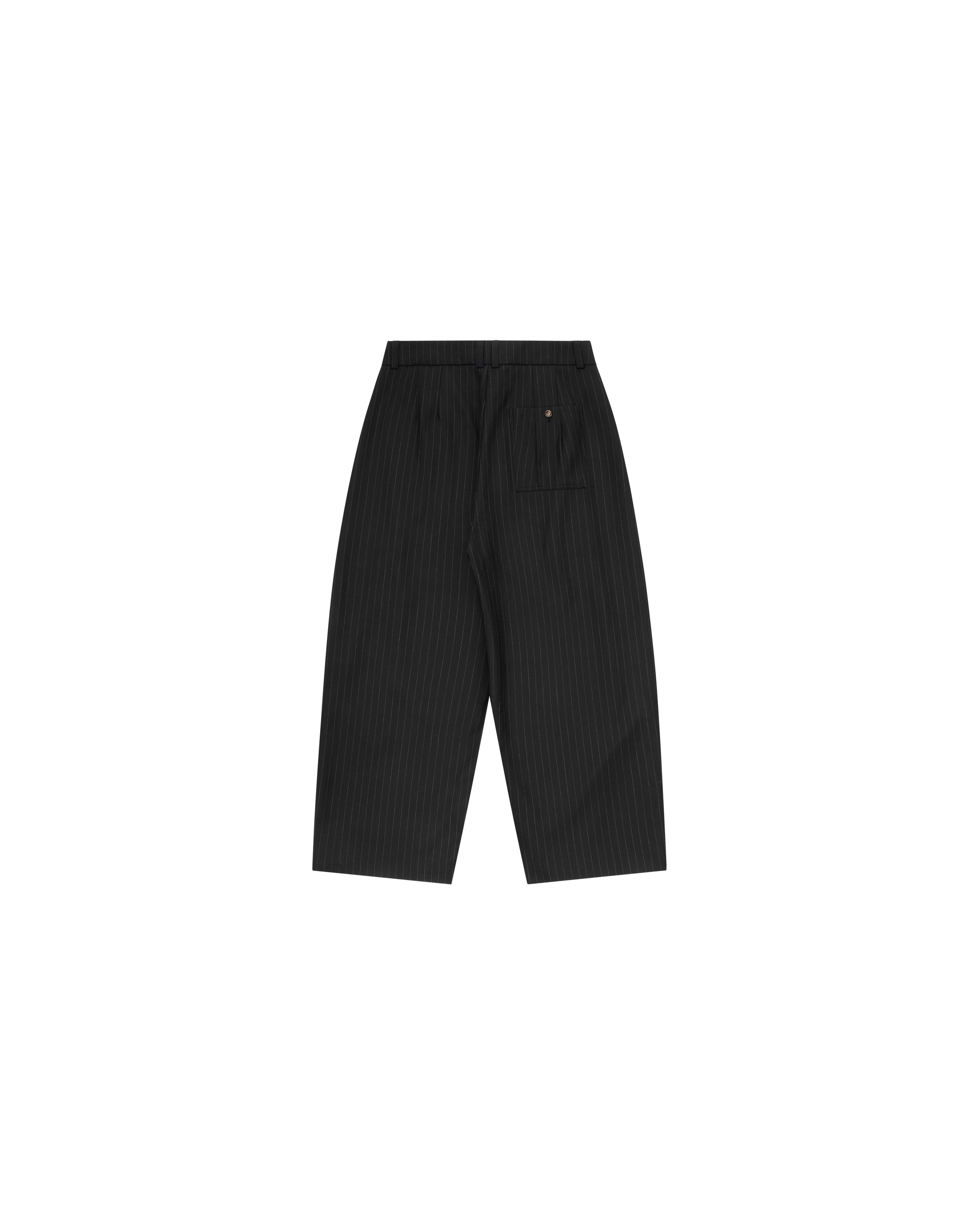 Sūtsu Diamond Pleated Wool Blend Black Pinstripe Trousers