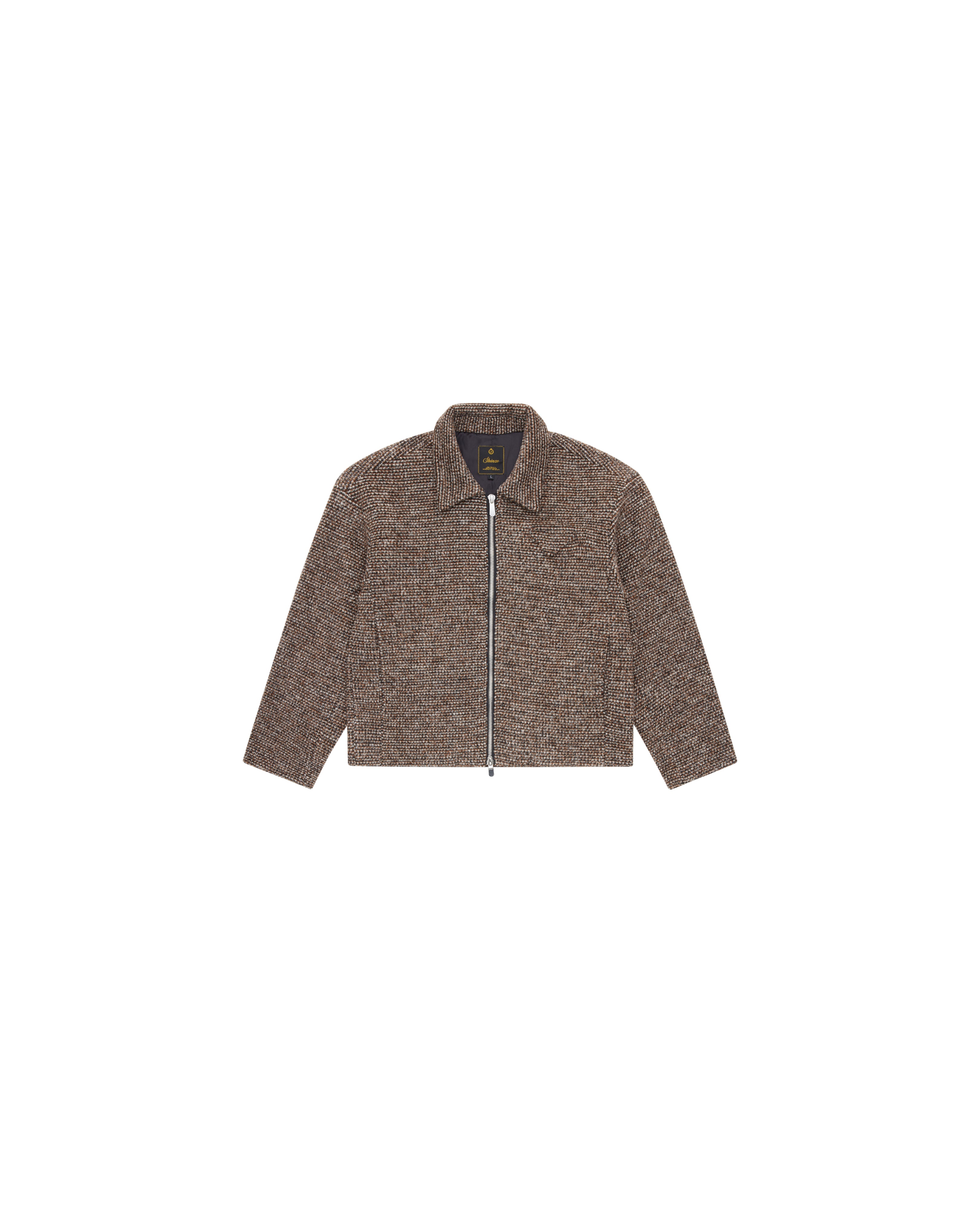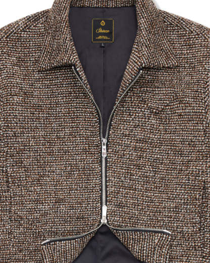 Brown Speckled Wool Zip Up Jacket