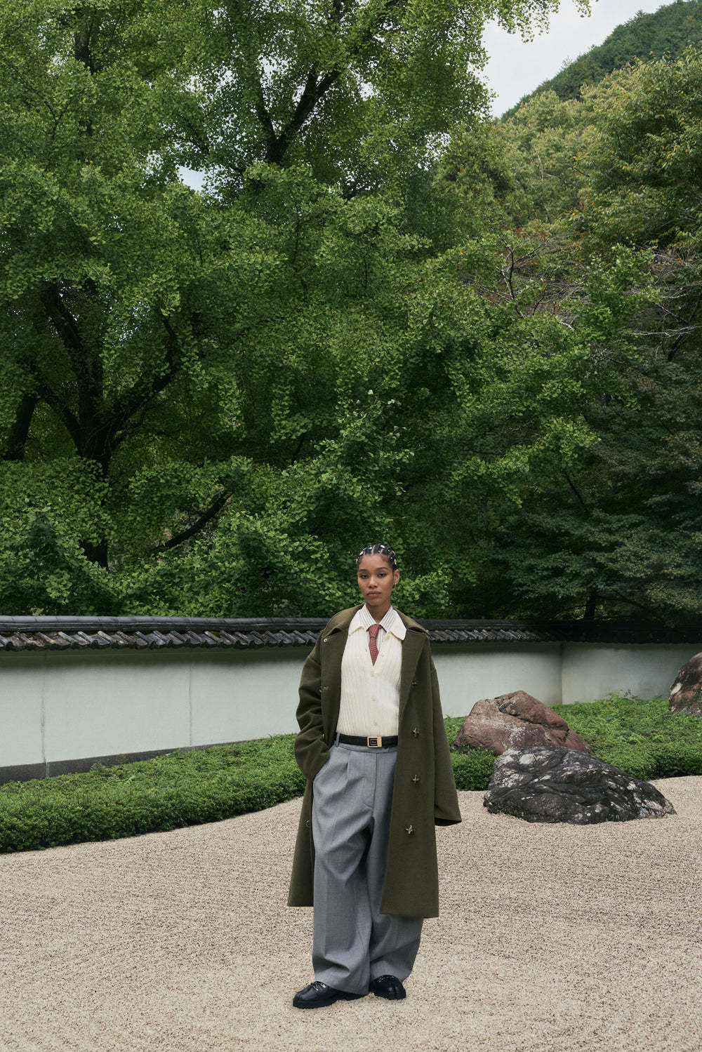 Green Wool Clasp Trench Coat