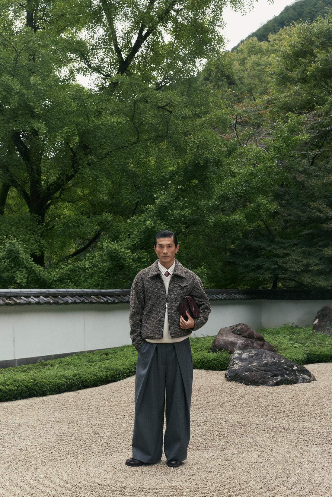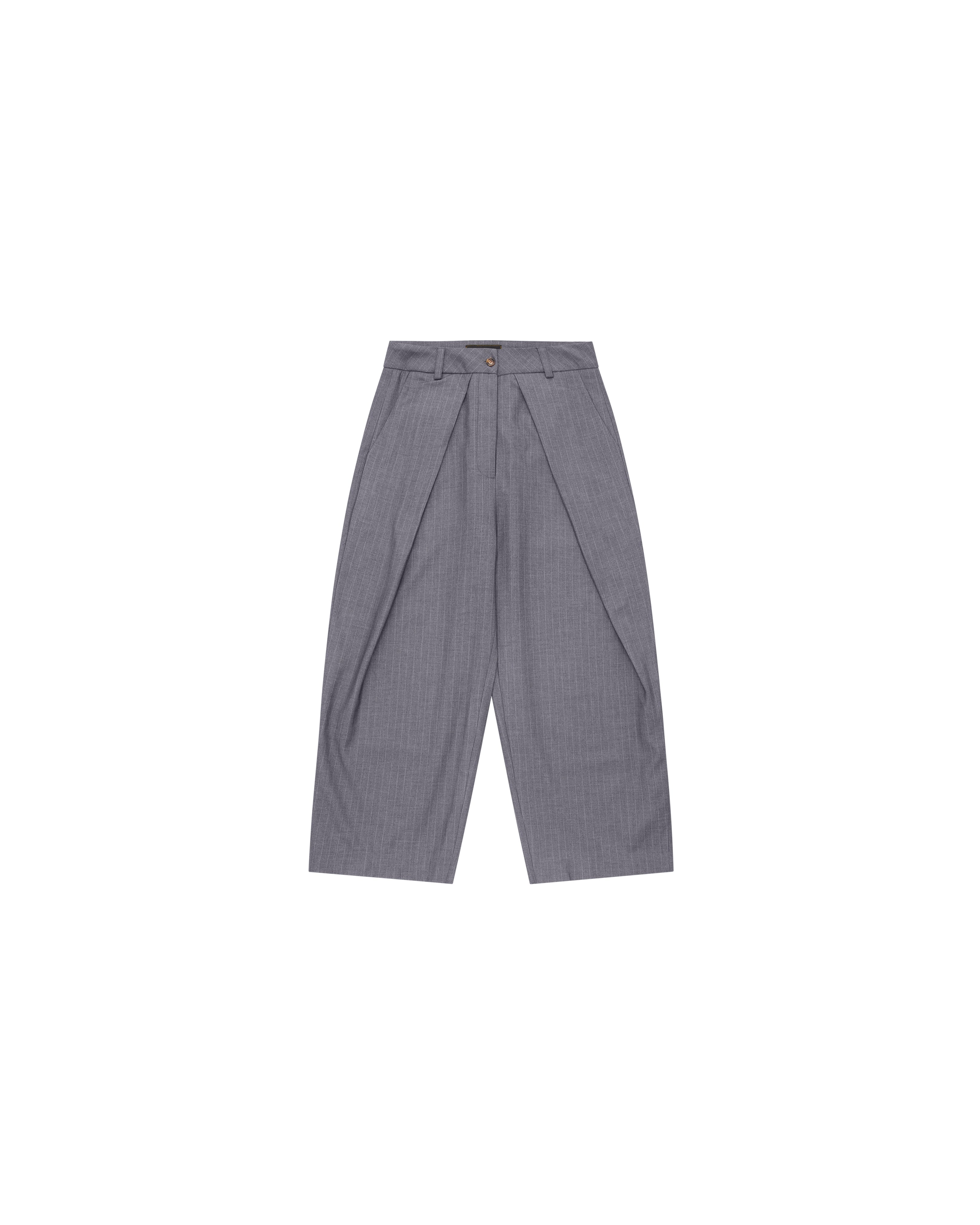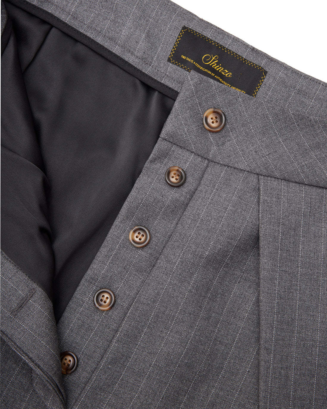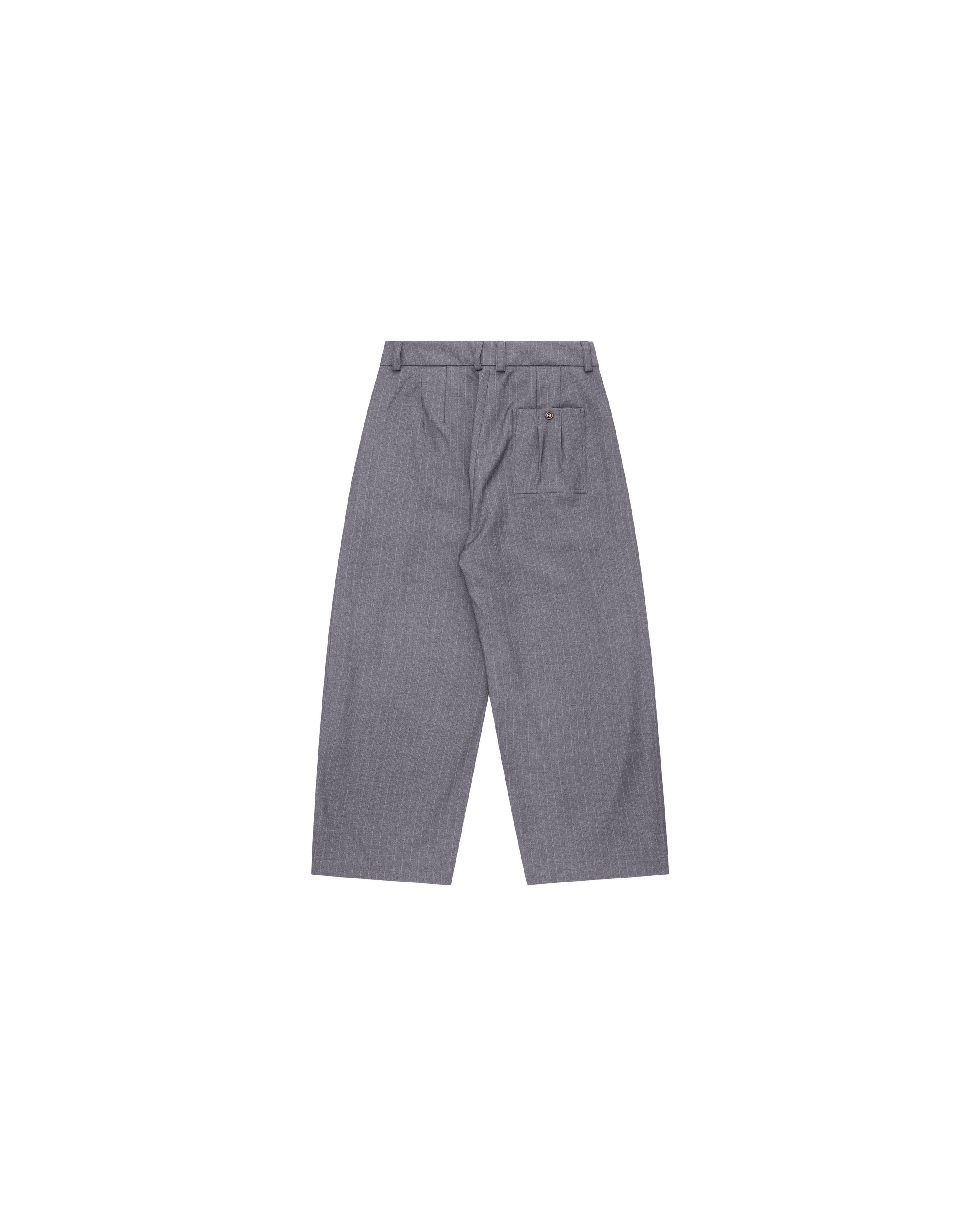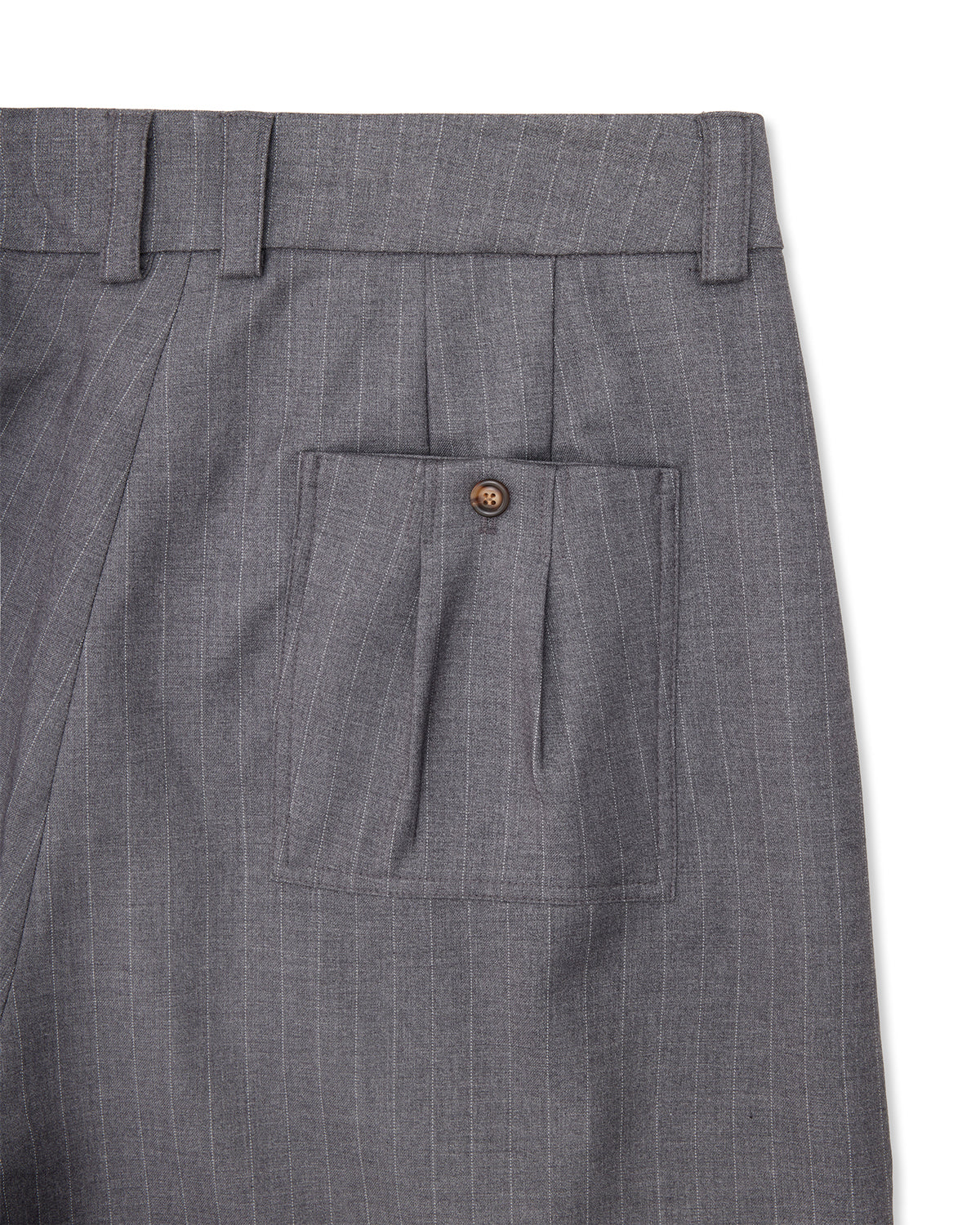 Sūtsu Diamond Pleated Wool Blend Granite Pinstripe Trousers