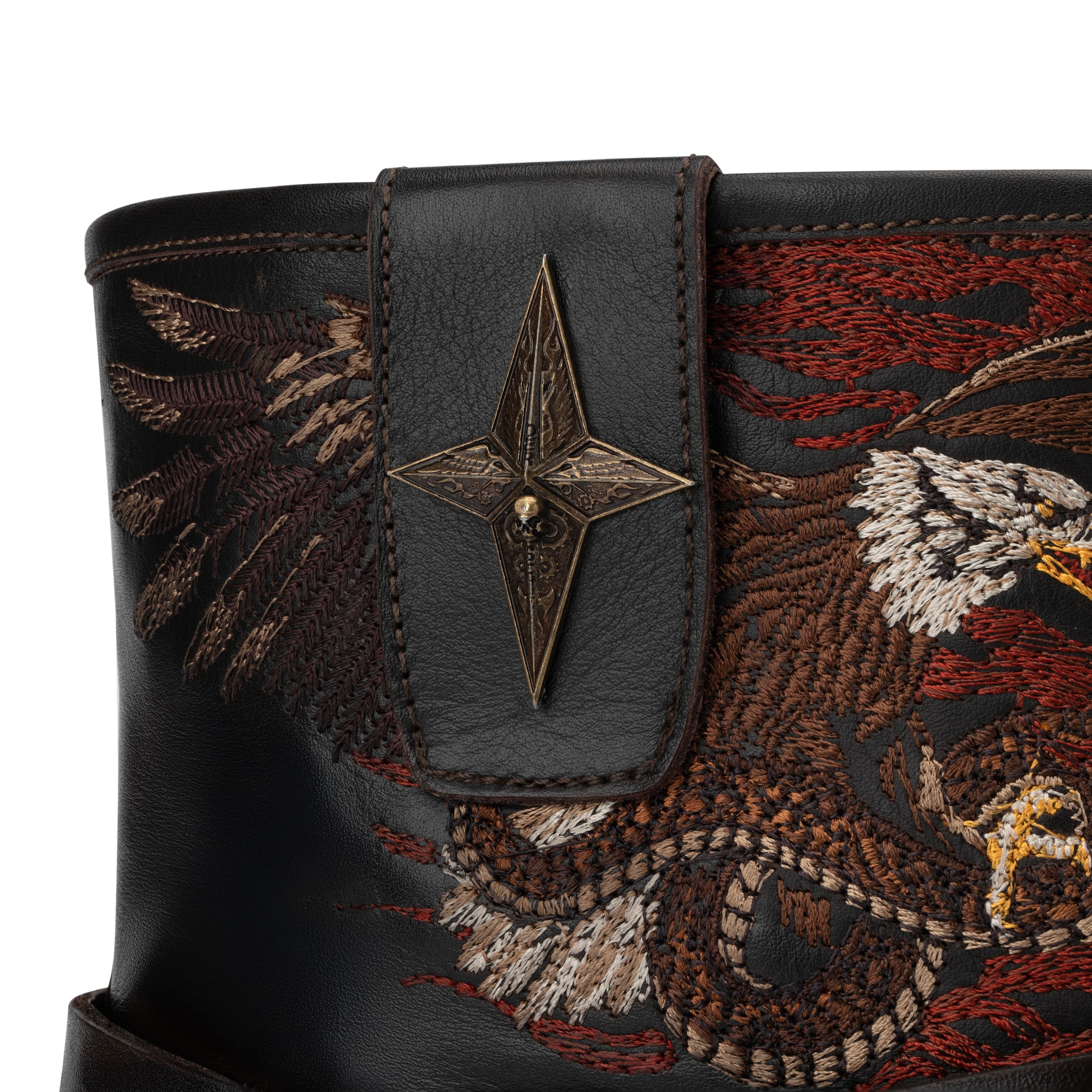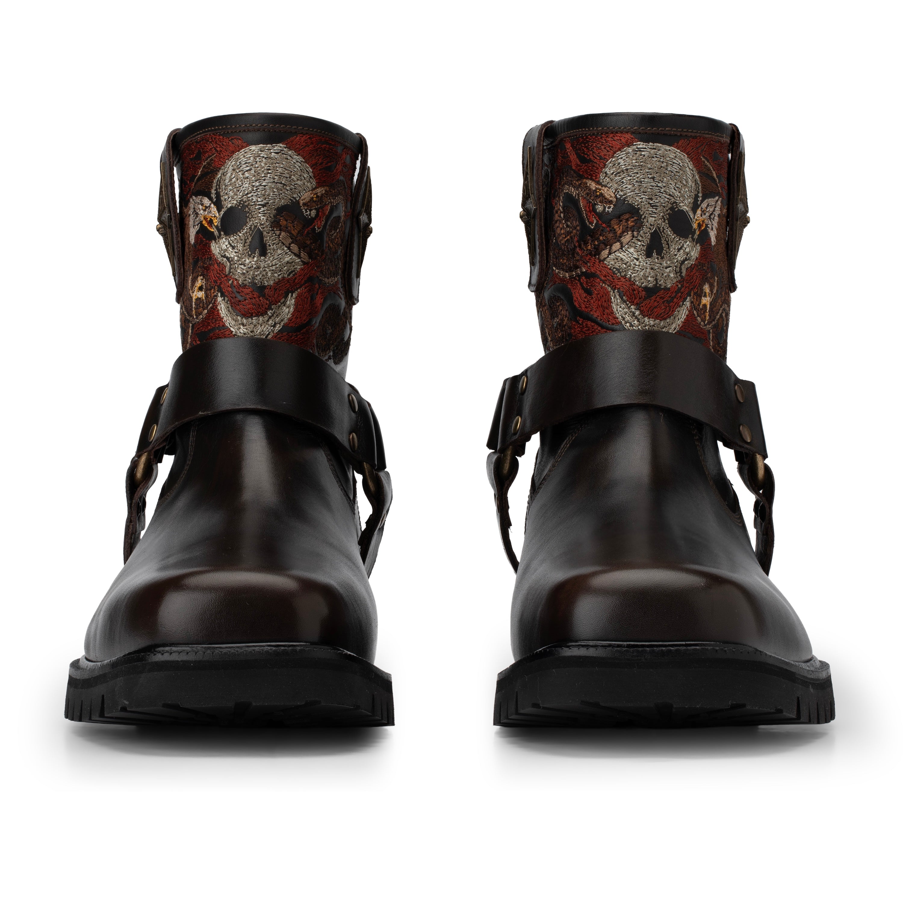 genuine leather / leather inner-lining / vibram sole / embossed insole / embroidered front shaft / antique brass-colored buckle / manufactured in Türkiye