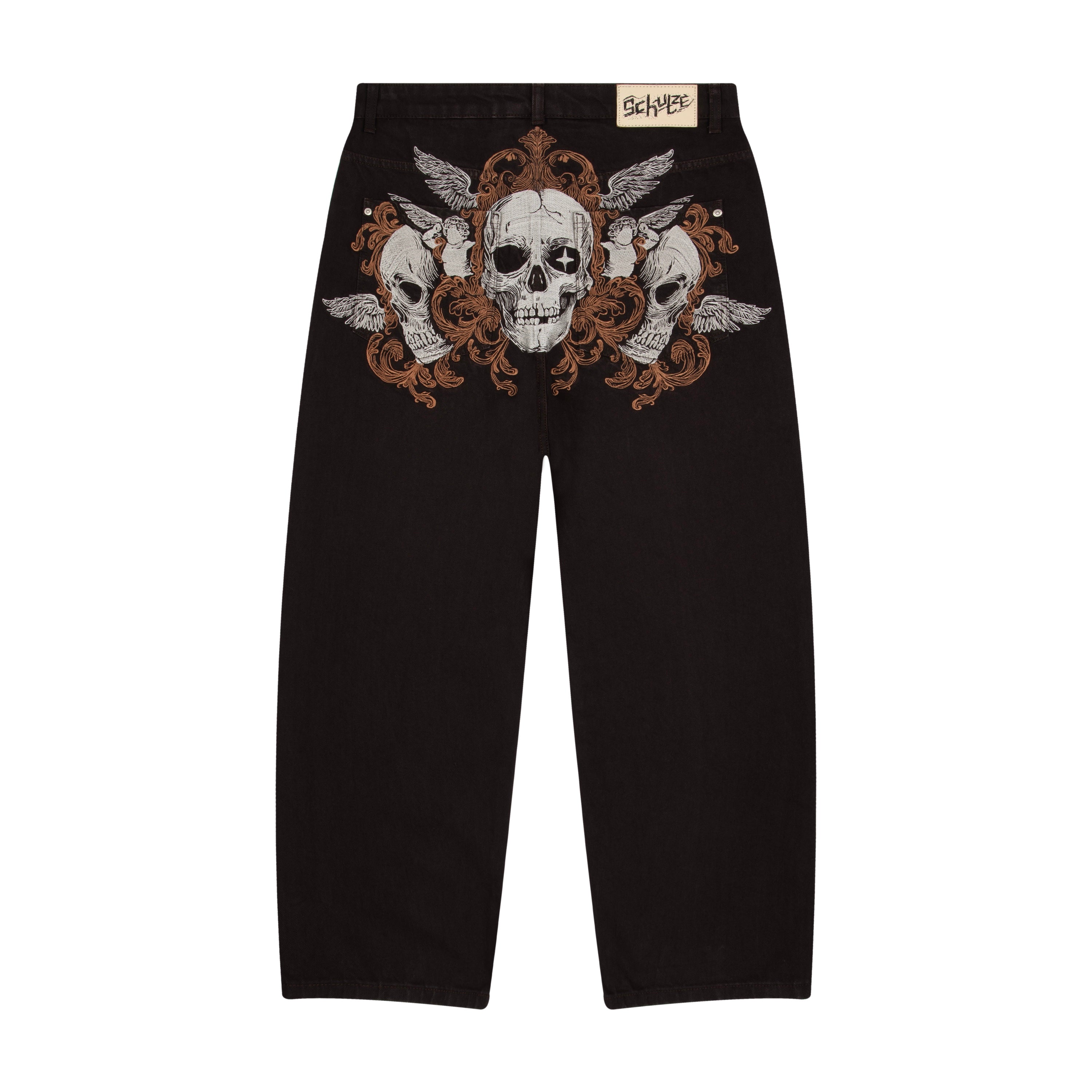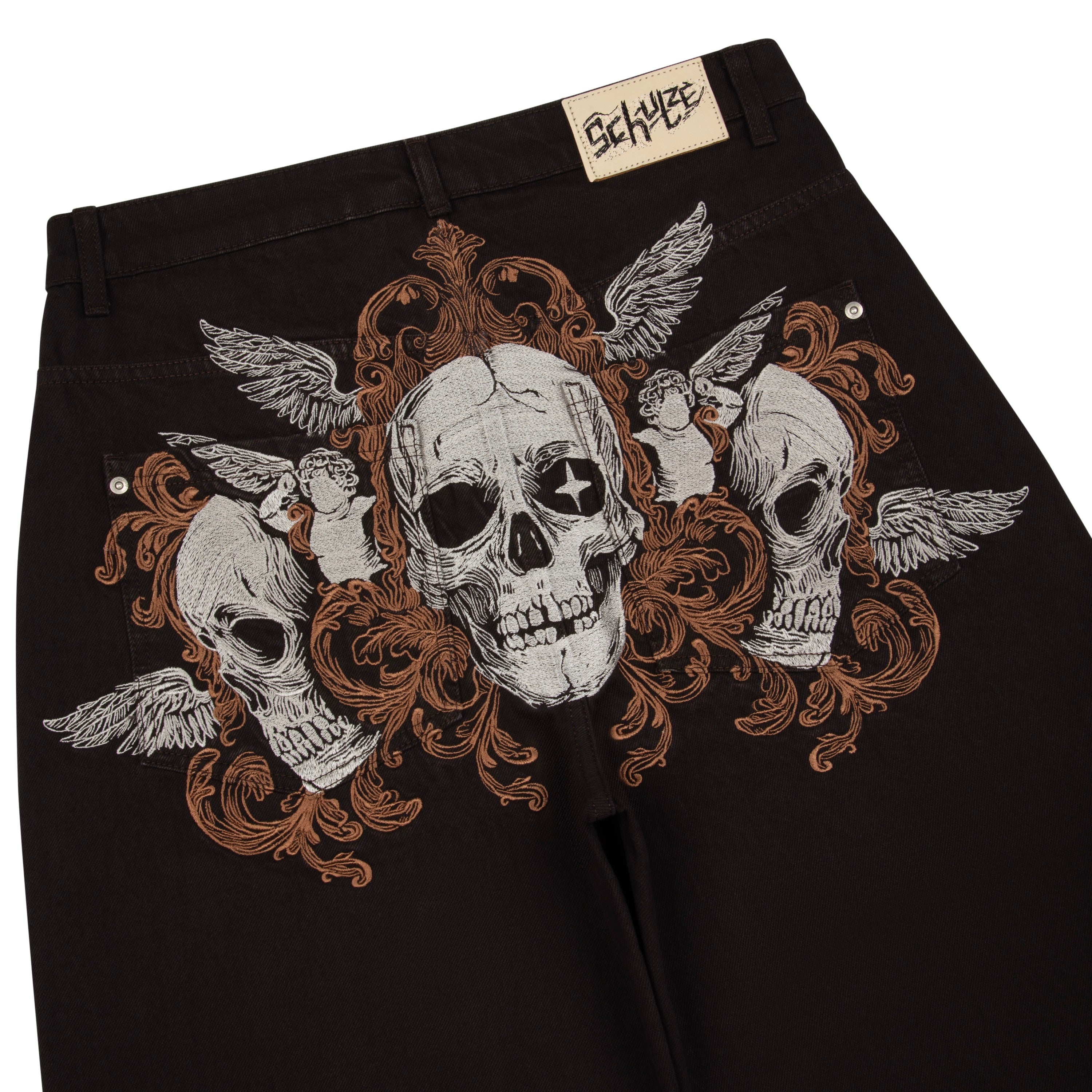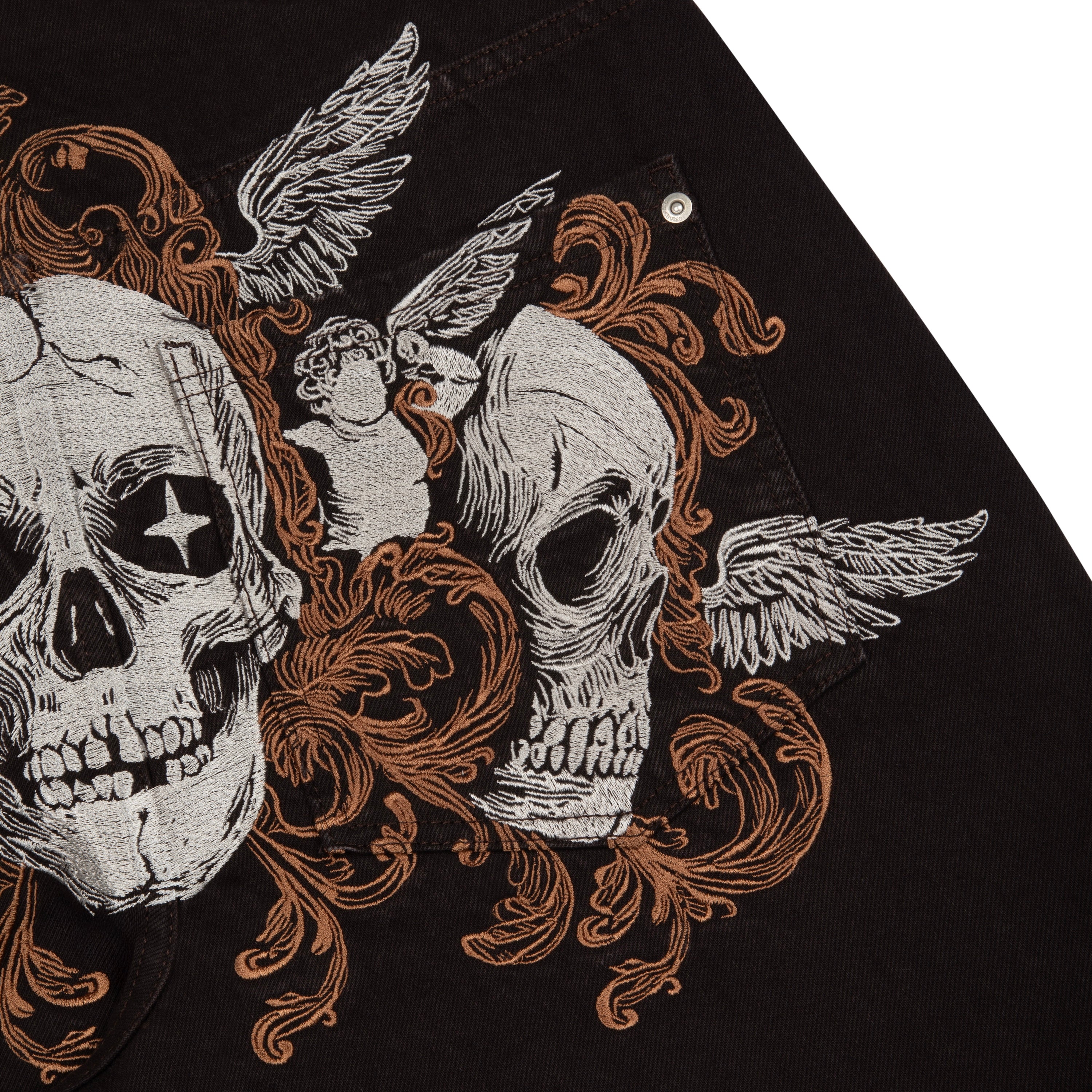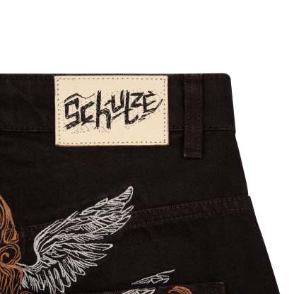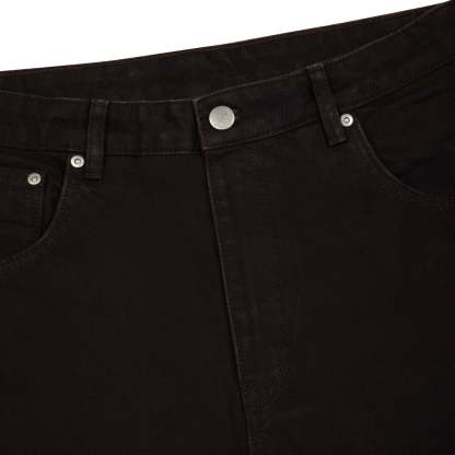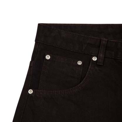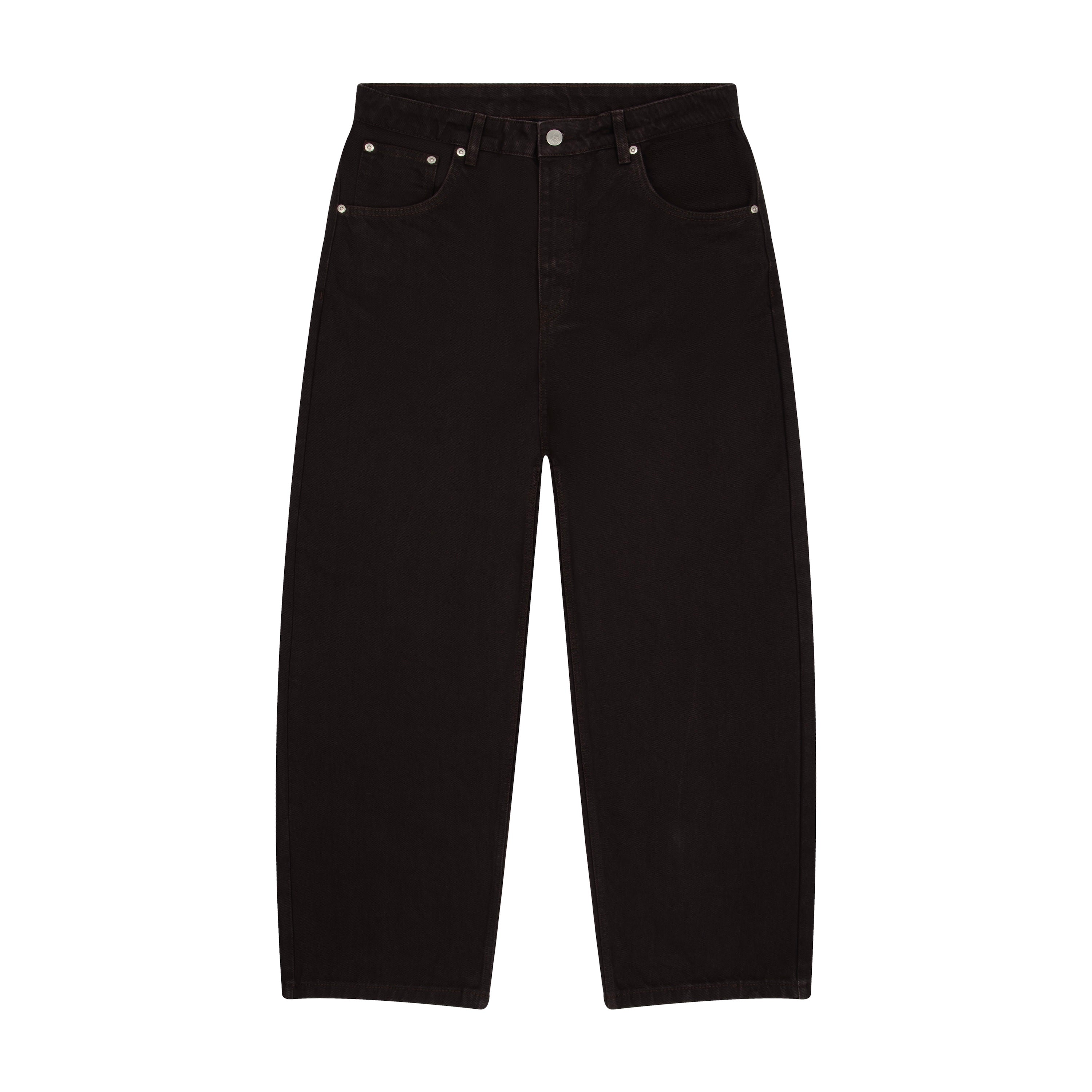 15oz denim / 100% cotton / embroidery on back / embroidered leather patch / wash inside out / balloon fit / fits true to size