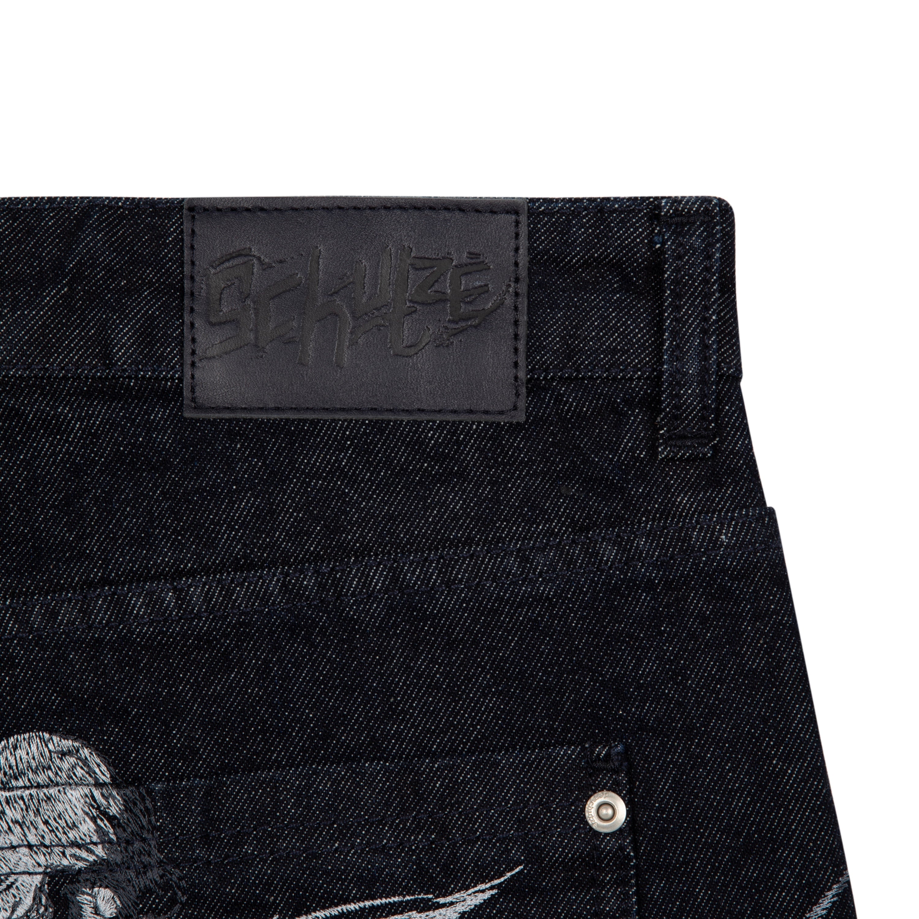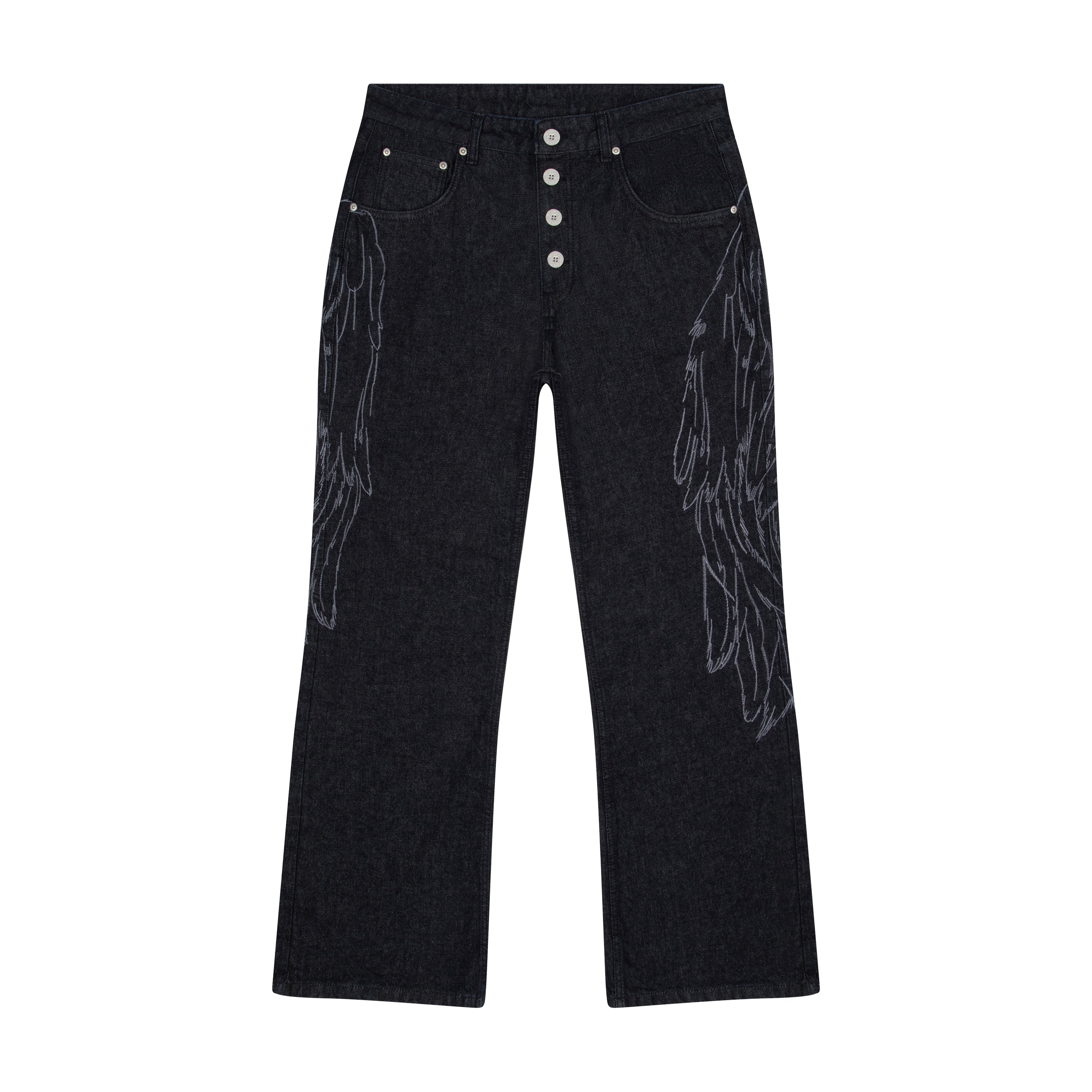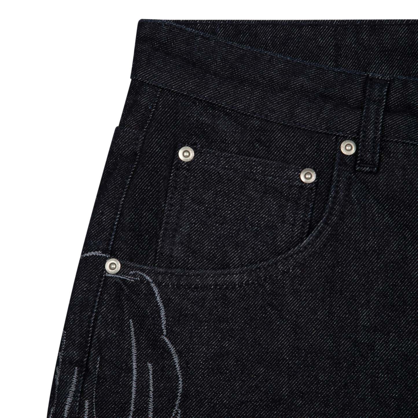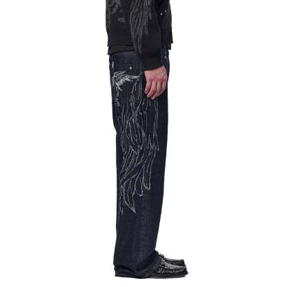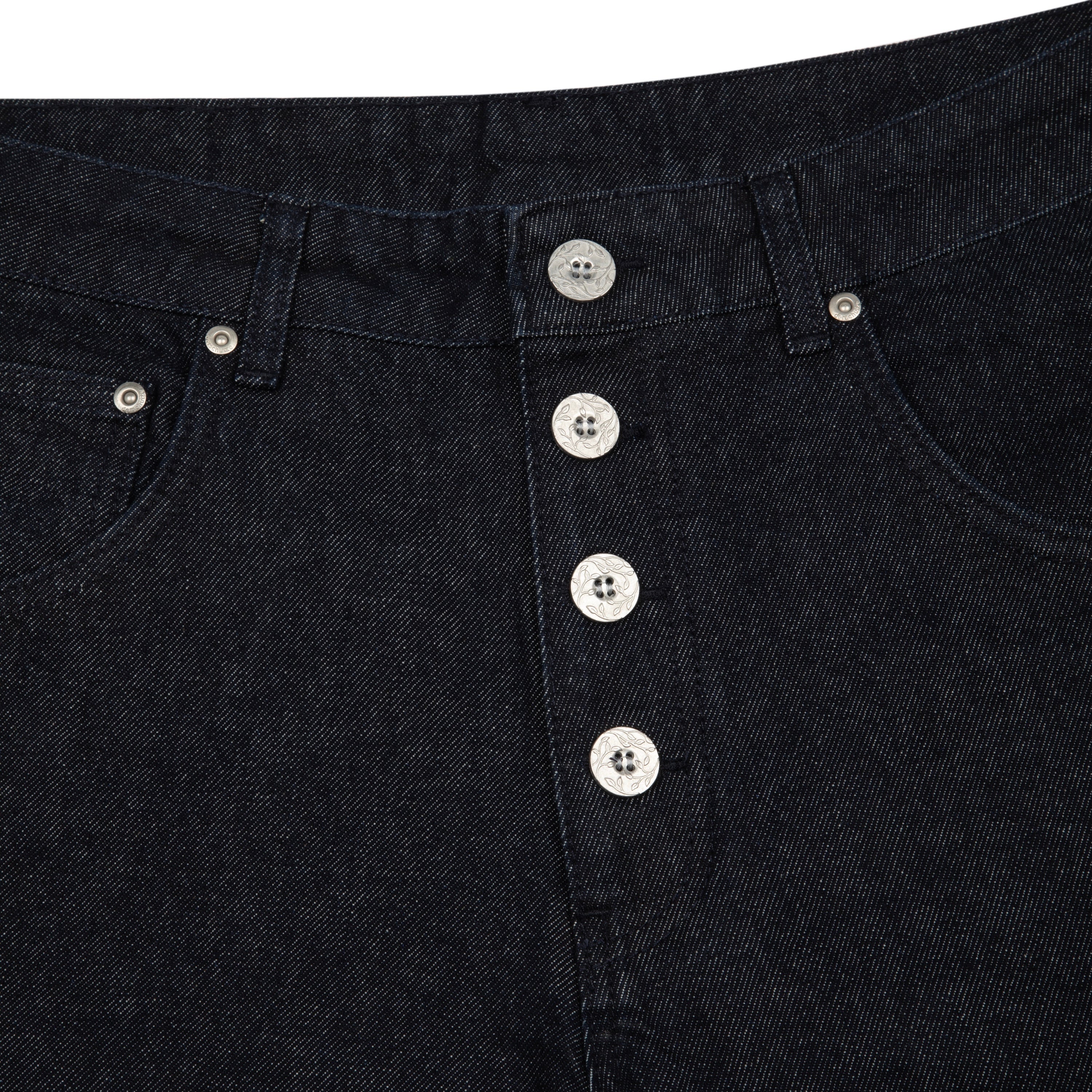 14,5oz denim / 100% cotton / embroidery on sides and back / embossed printed leather patch / buttons on front closure / wash inside out / bootcut fit / fits true to size