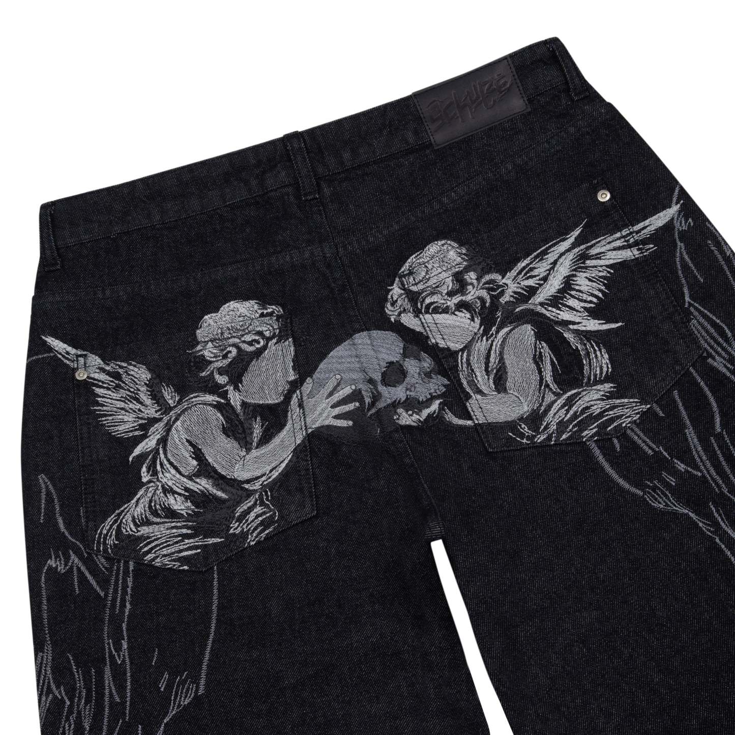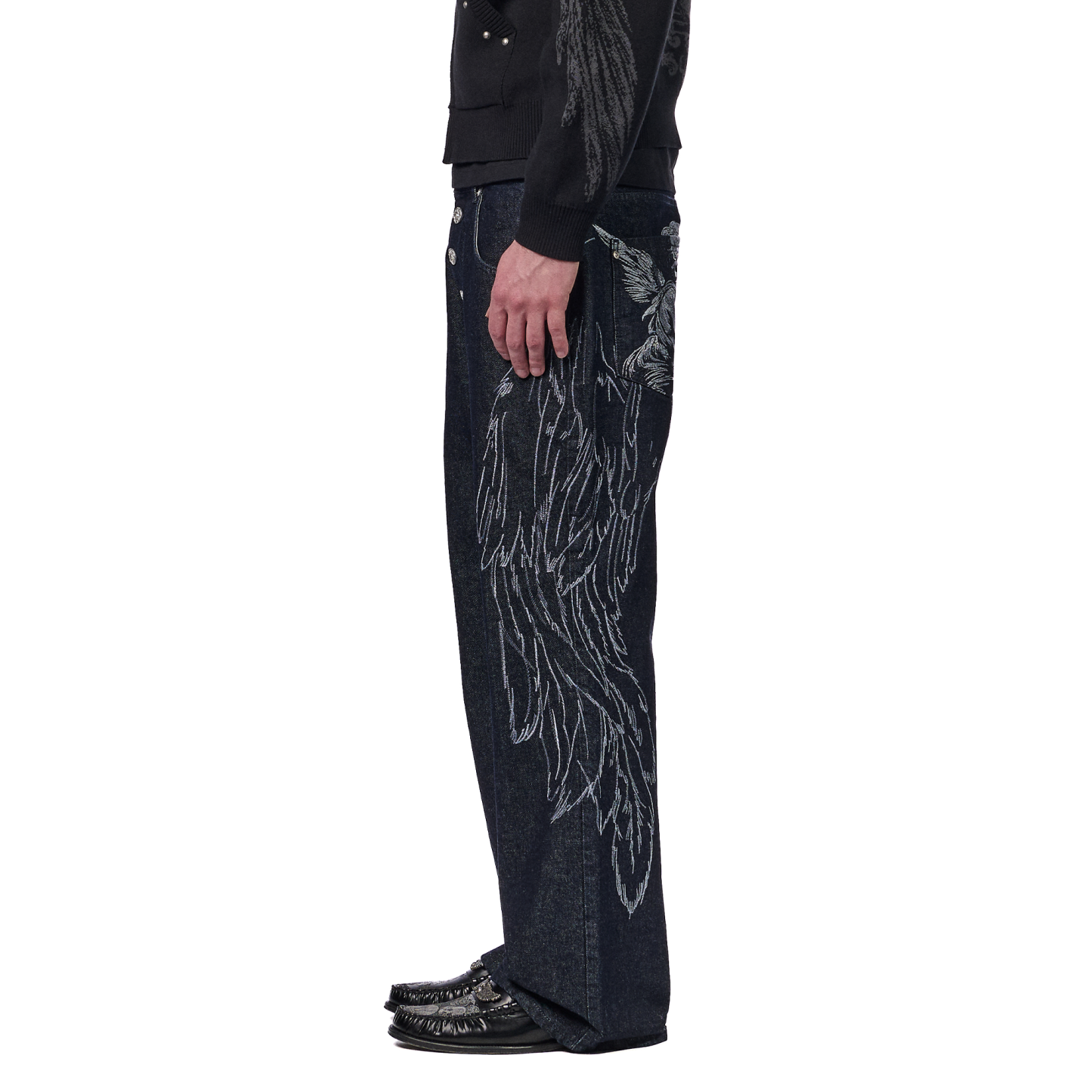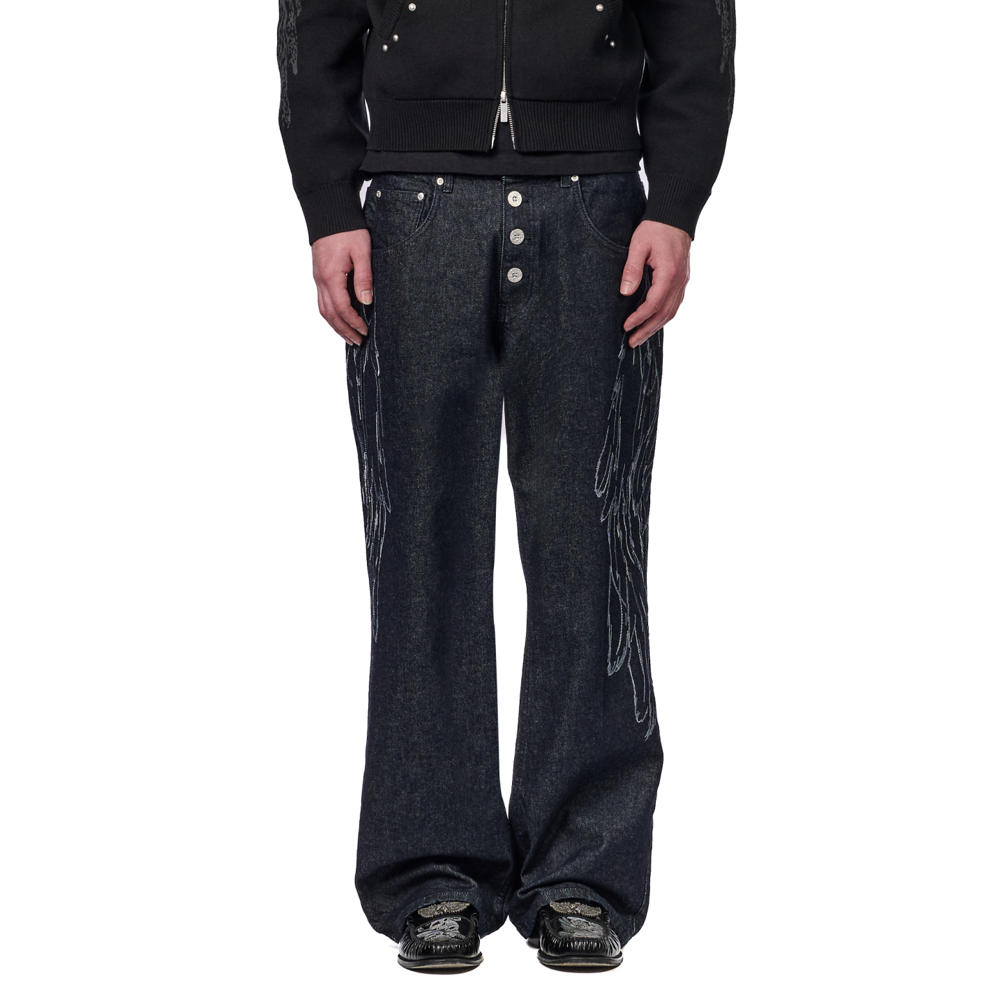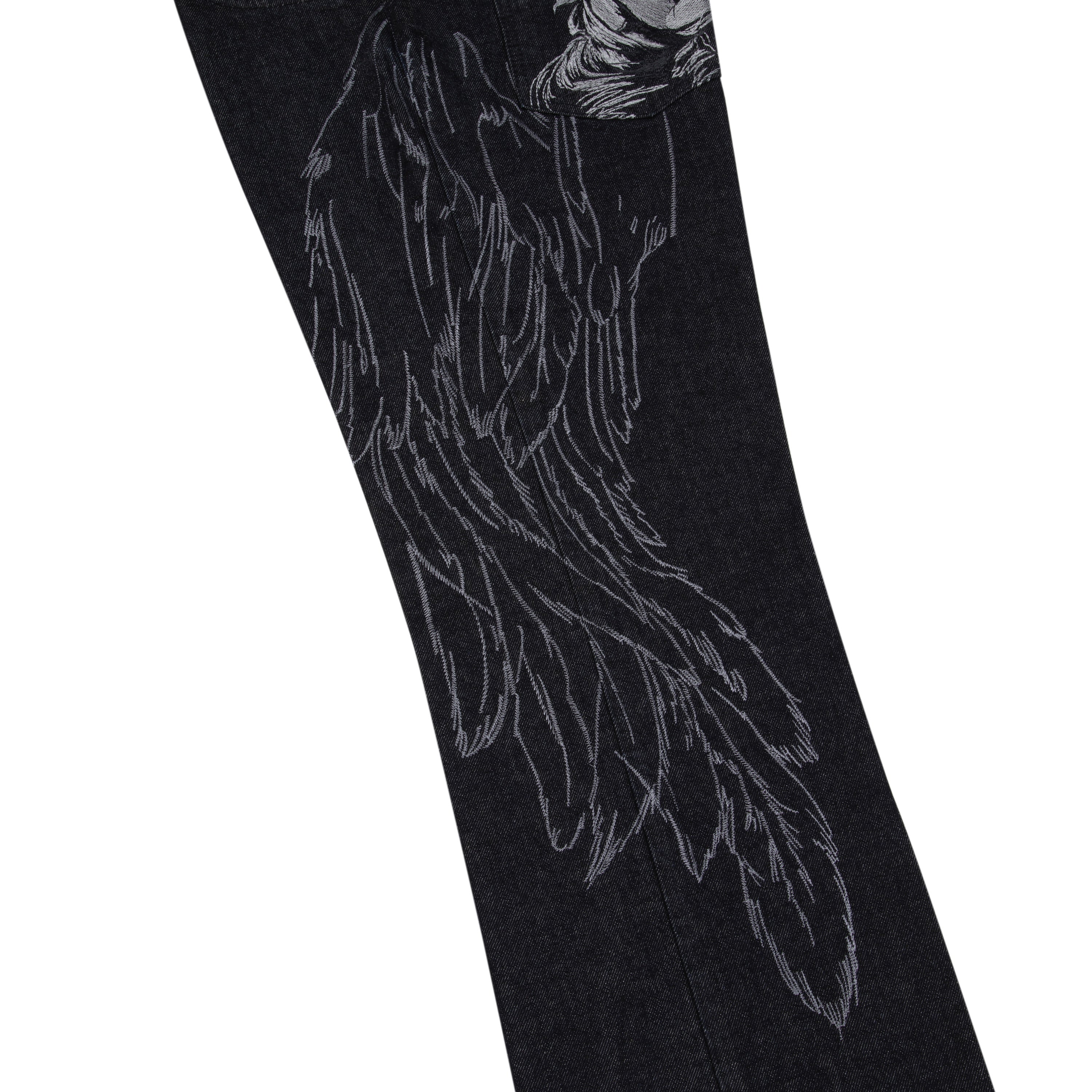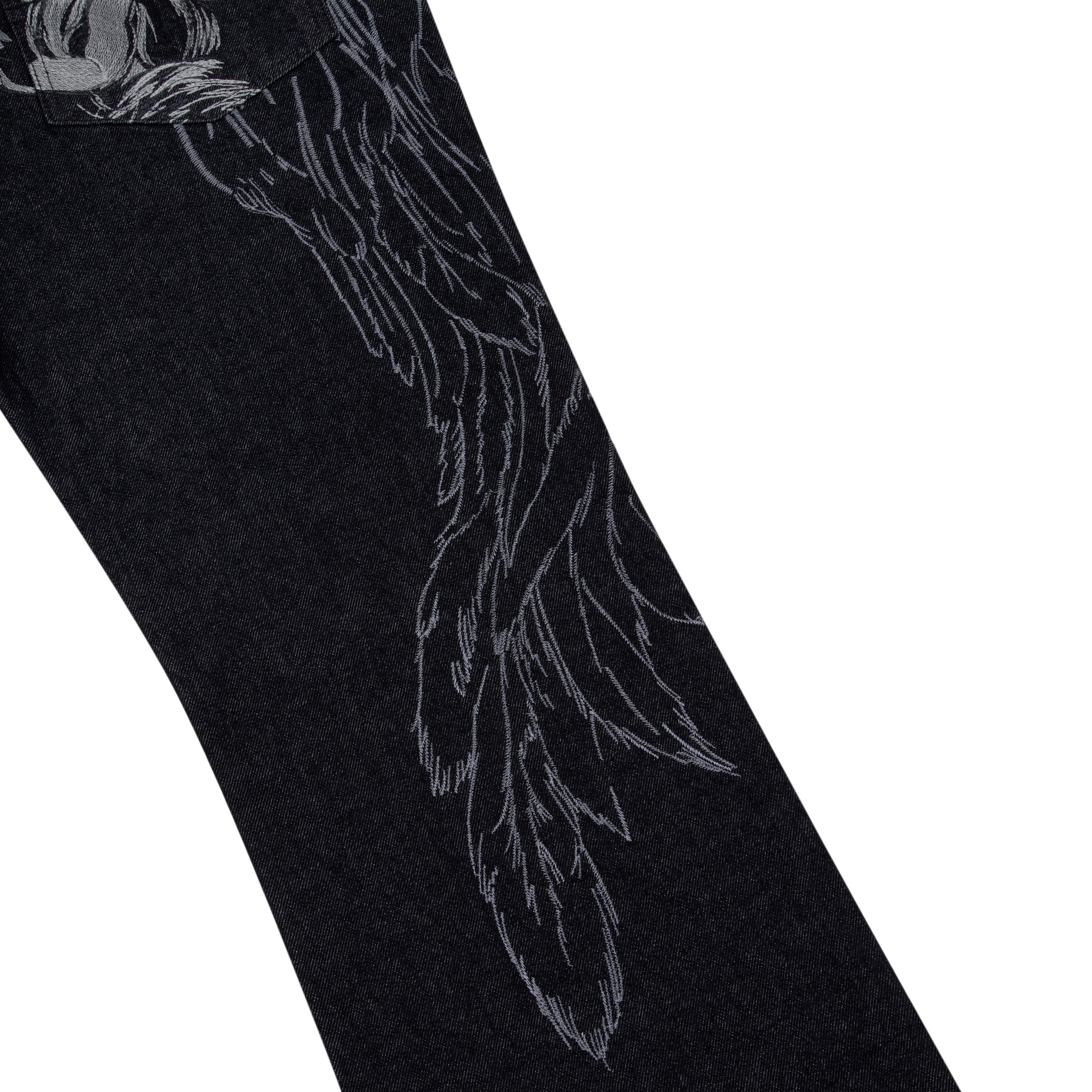14,5oz denim / 100% cotton / embroidery on sides and back / embossed printed leather patch / buttons on front closure / wash inside out / bootcut fit / fits true to size