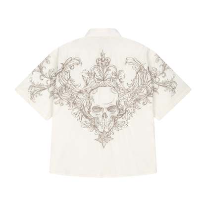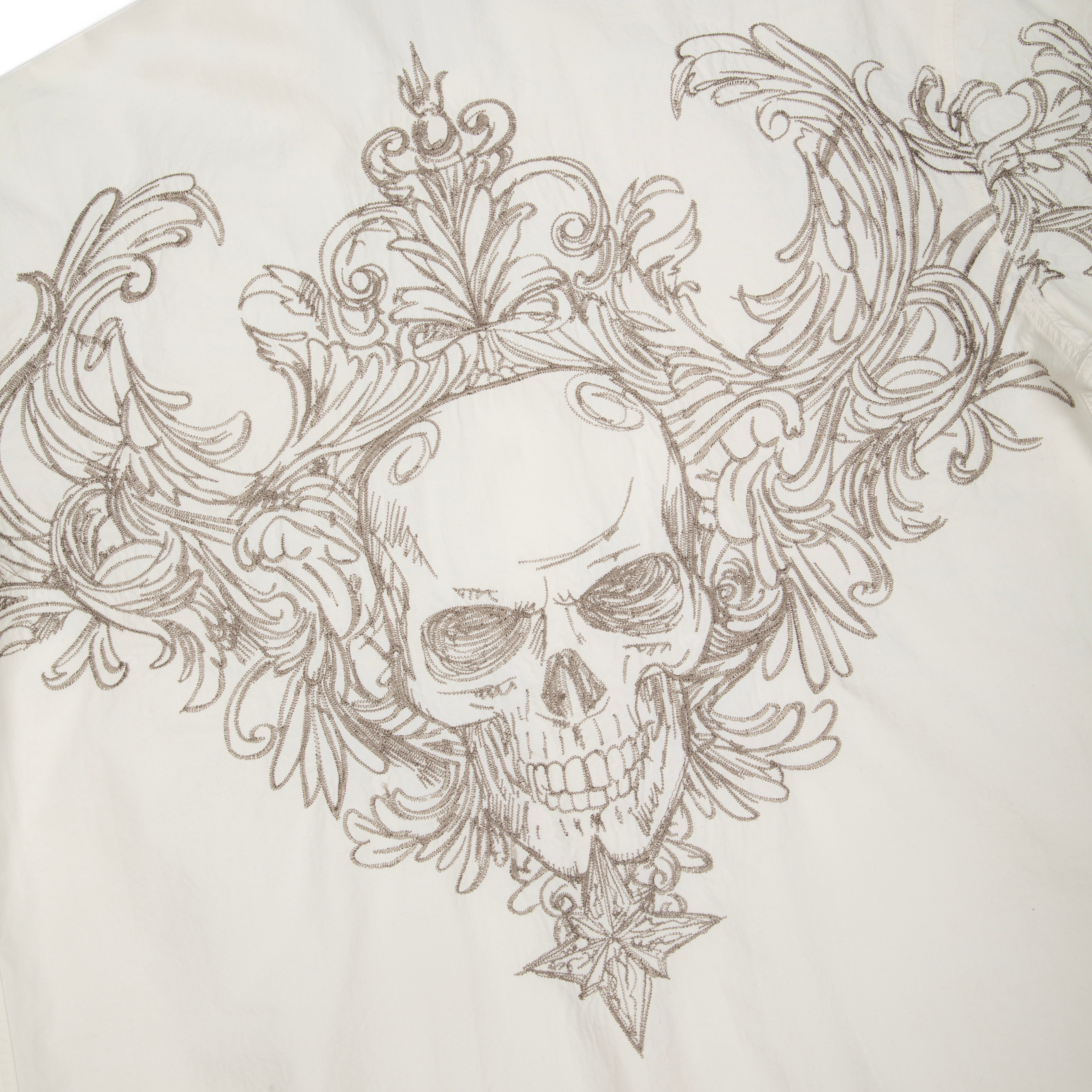poplin fabric / 100% cotton / embroidery on back and sleeves / with buttons / curved hem / relaxed fit / fits true to size / shipping is delayed by up to 2 weeks