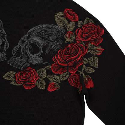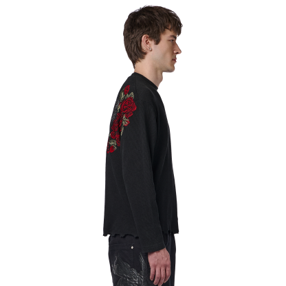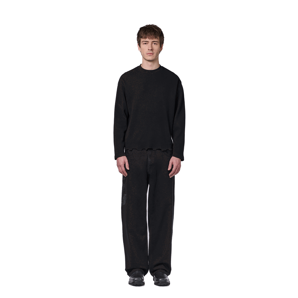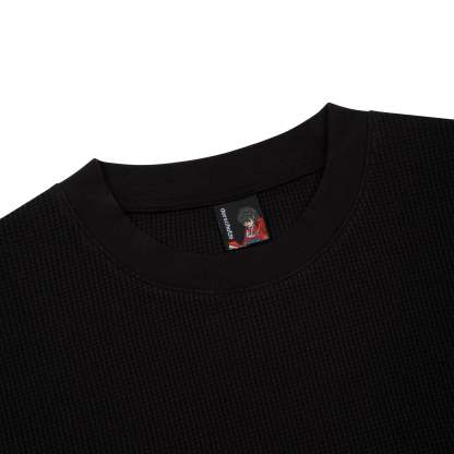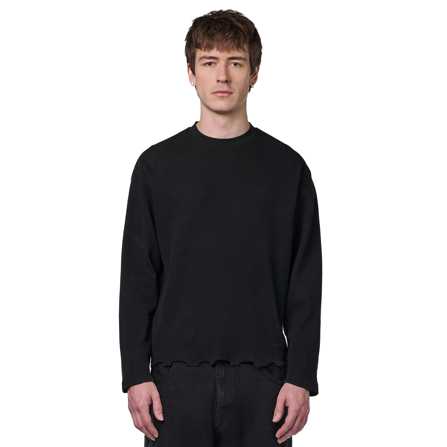 255gsm preshrunk waffle fabric / 100% cotton / embroidery on back and sleeves / distressed hem / fits true to size