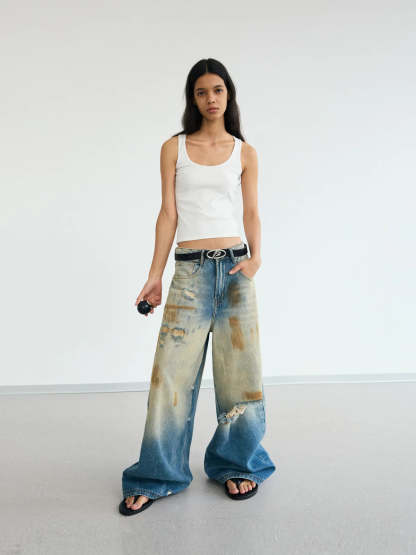 Peoplesense Mud Dyed Vintage Distressed Jeans(Limited)