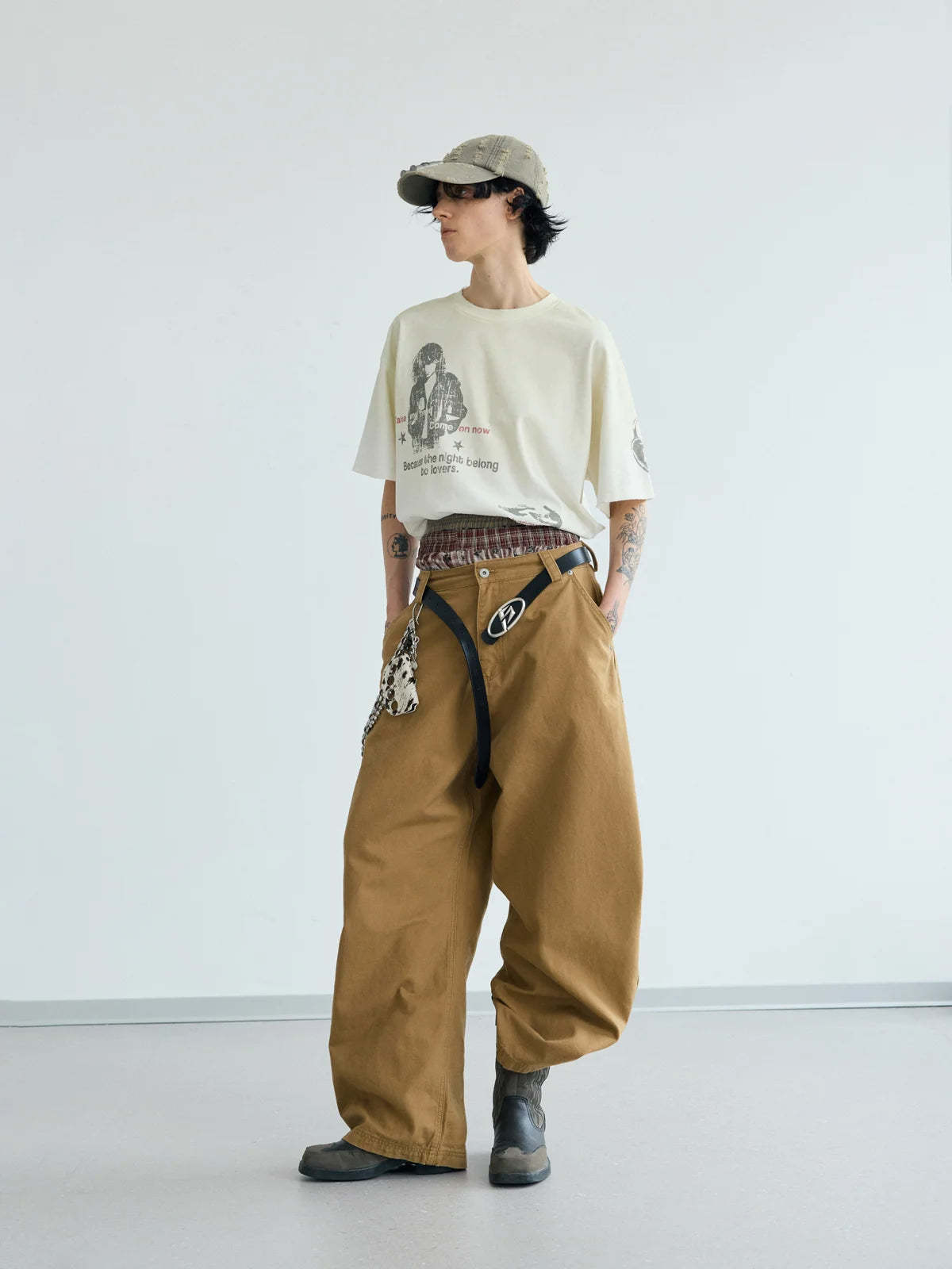 Peoplesense Retro Curved Leg Trousers Brown(Limited)