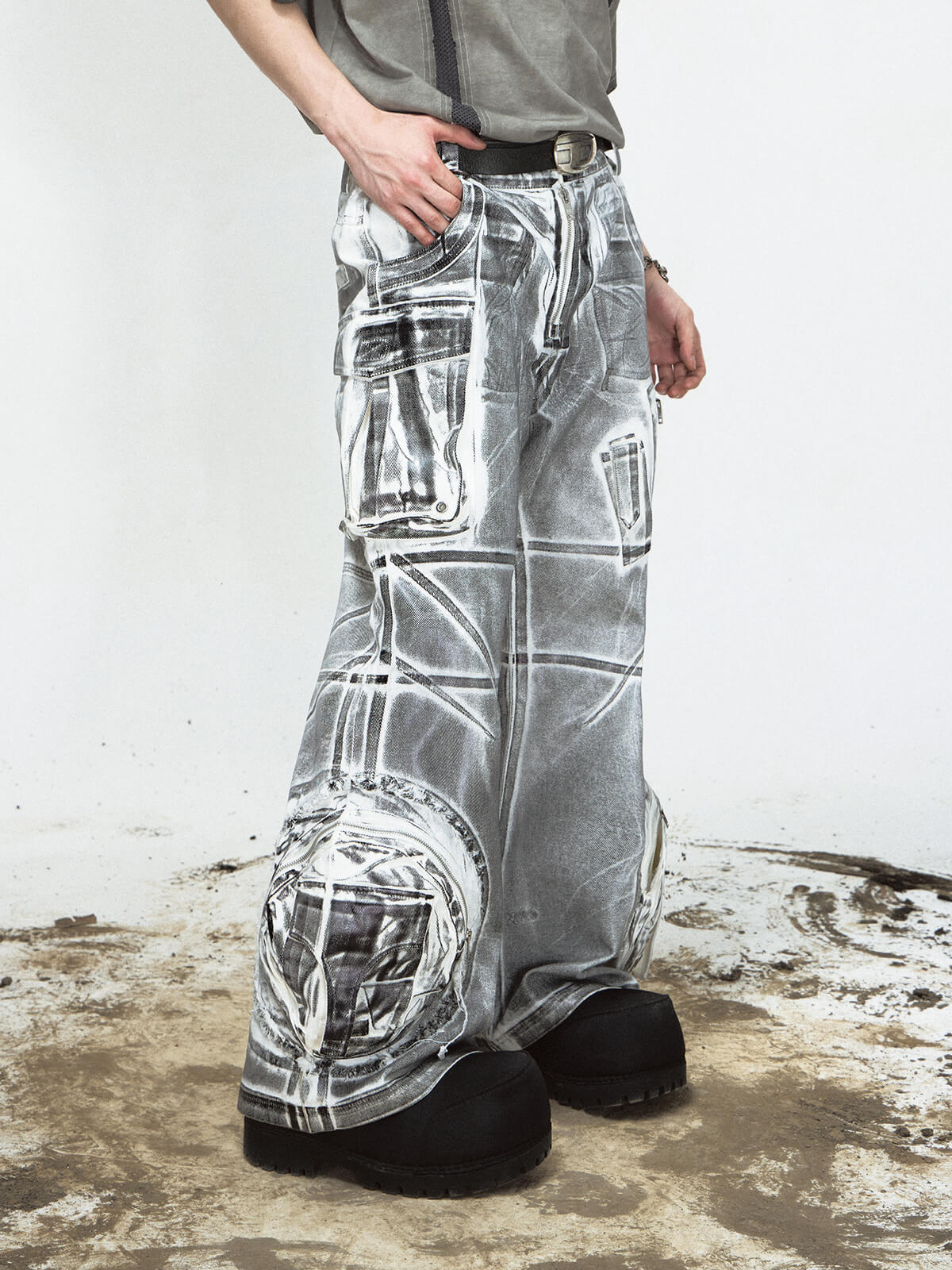 • Male model is 180cm/5′11″, weight 68kg/150lbs, waist 74cm/29in, hips 95cm/37in, wearing size L.