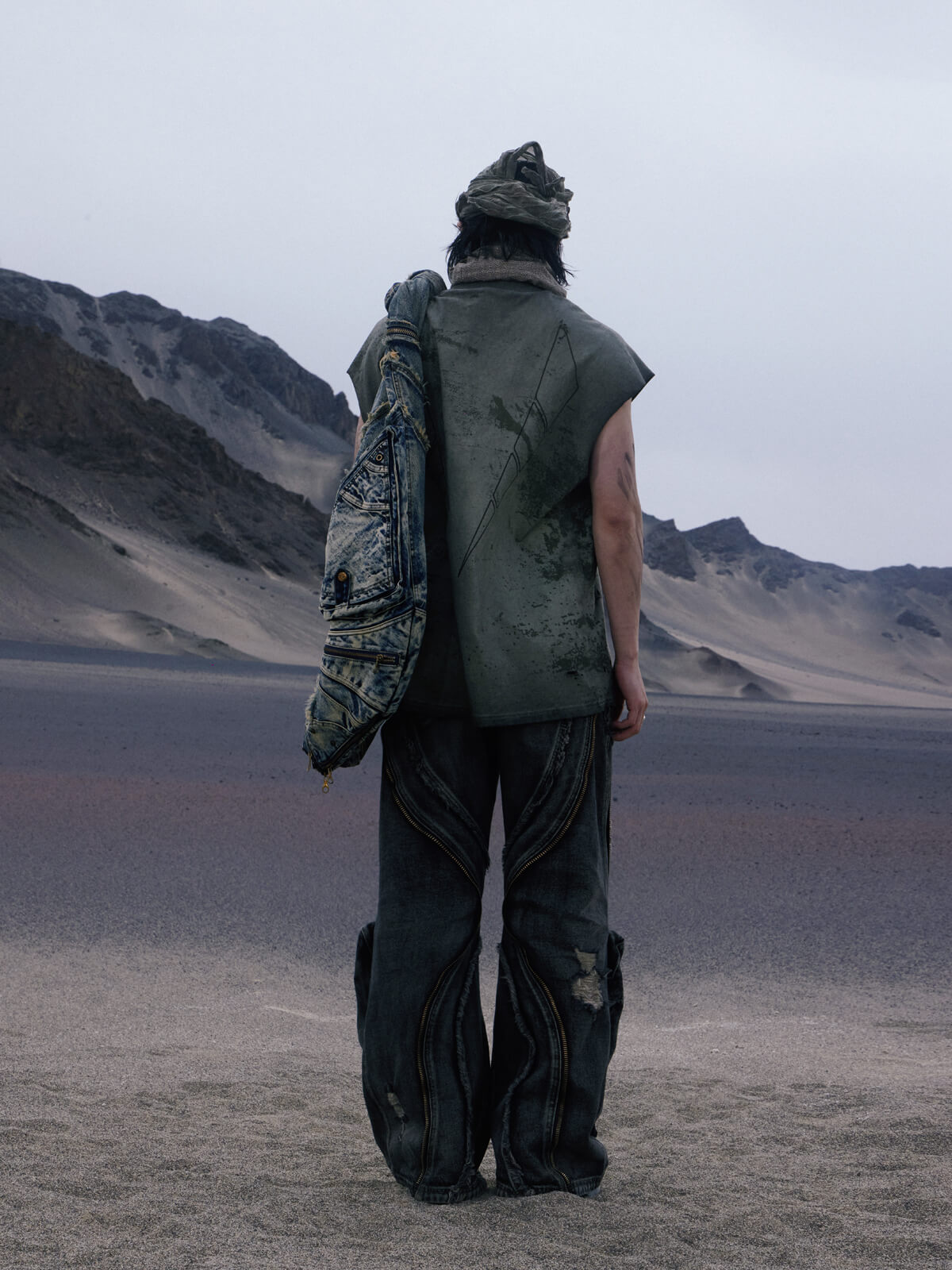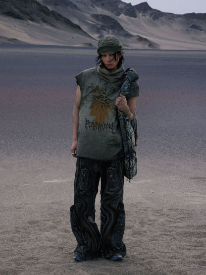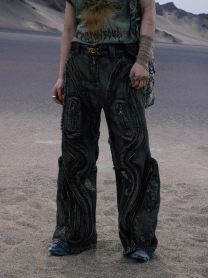 Personsoul Dirty Ripped Denim Baggy Jeans