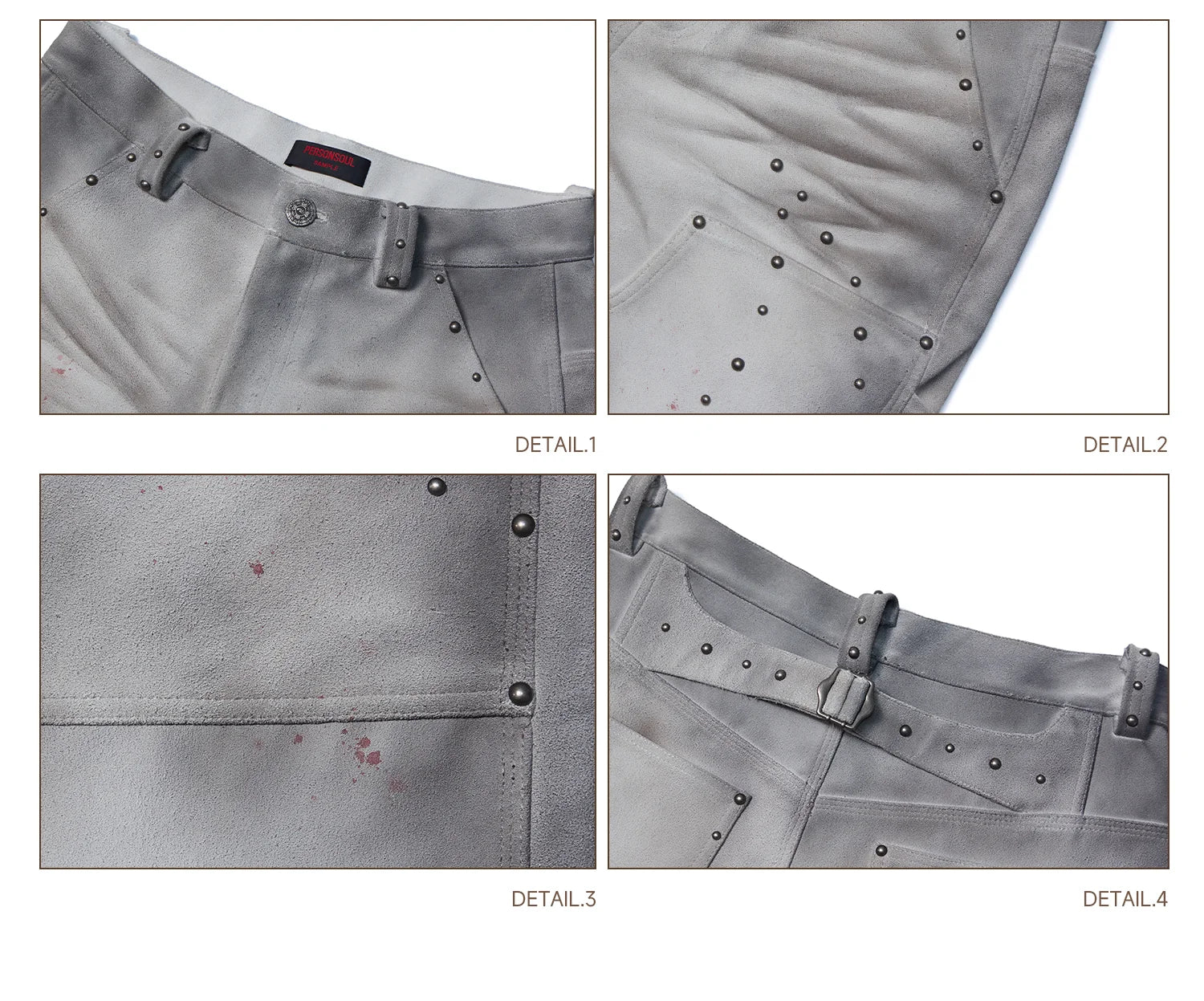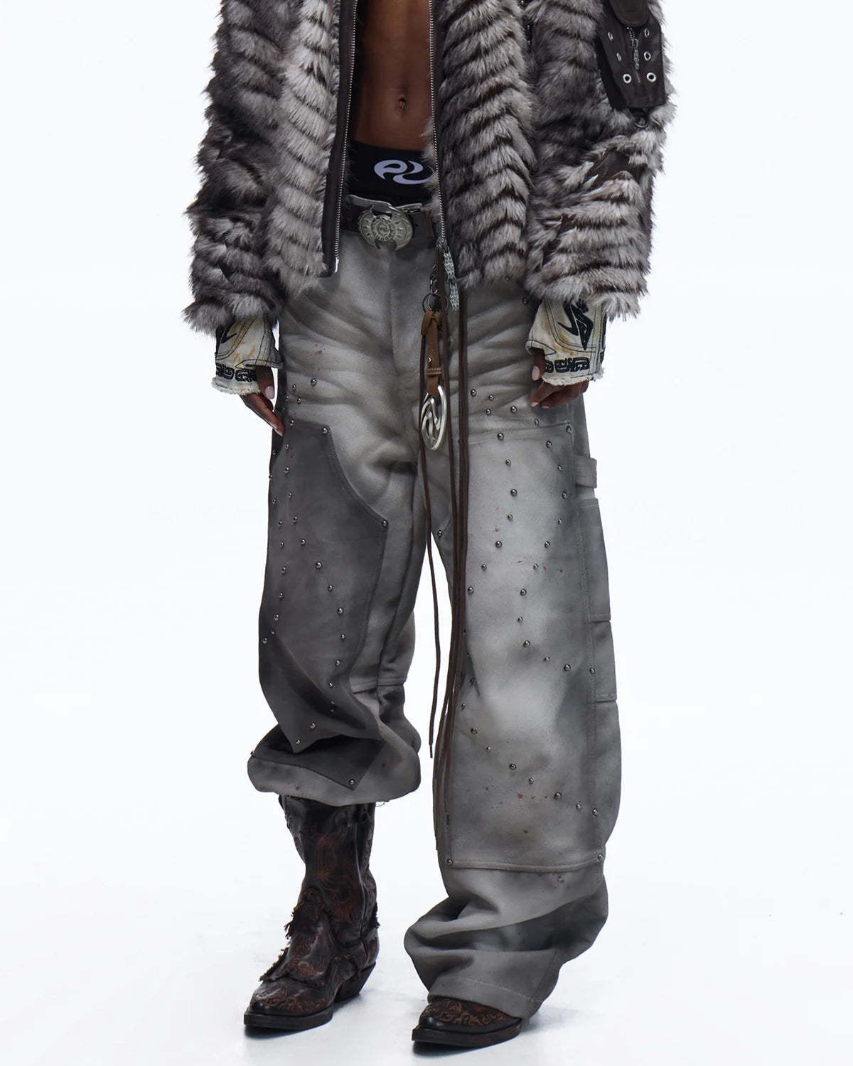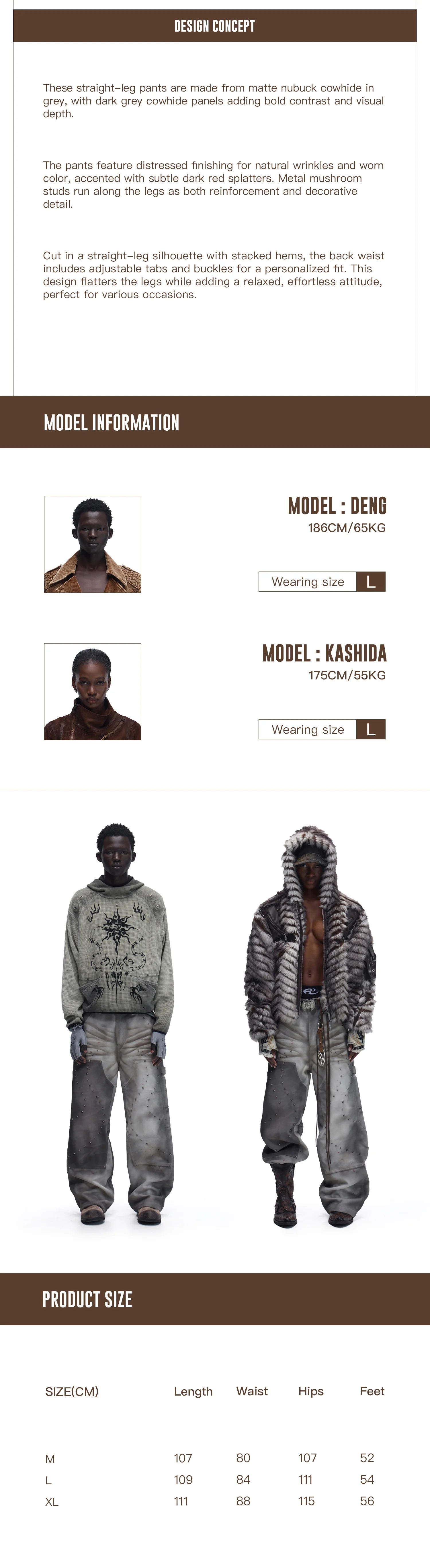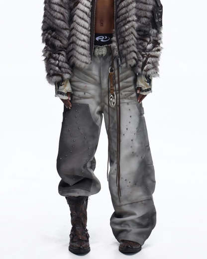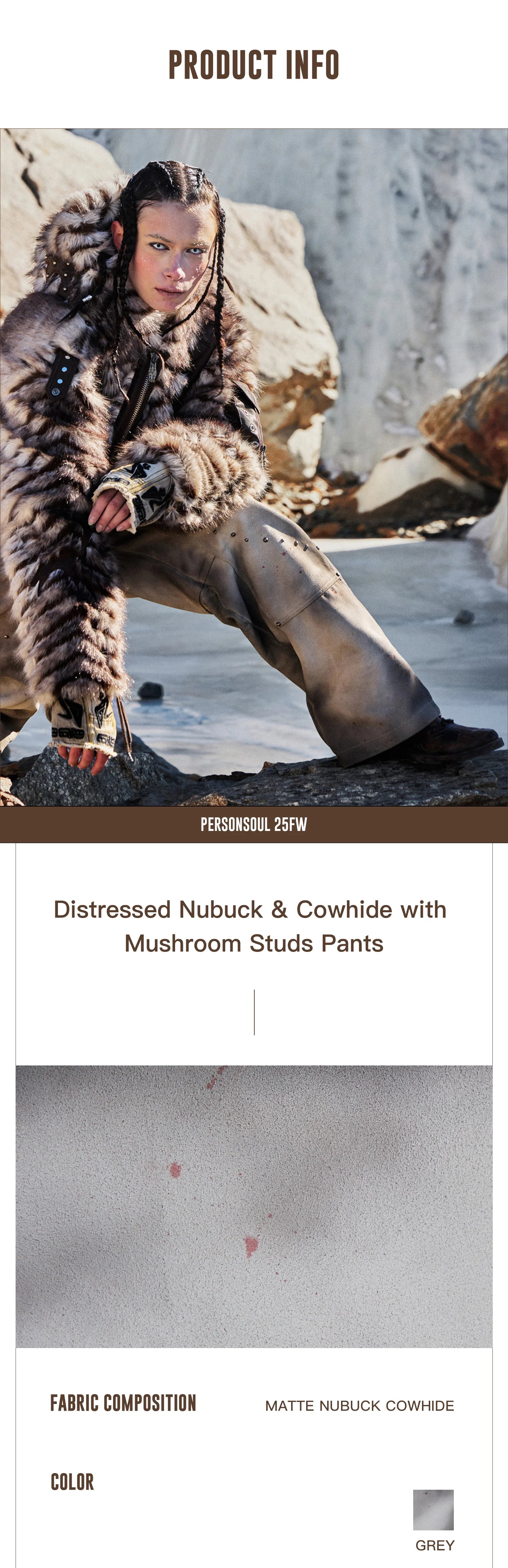 Personsoul Distressed Nubuck & Cowhide with Mushroom Studs Pants(Limited 100 pieces)