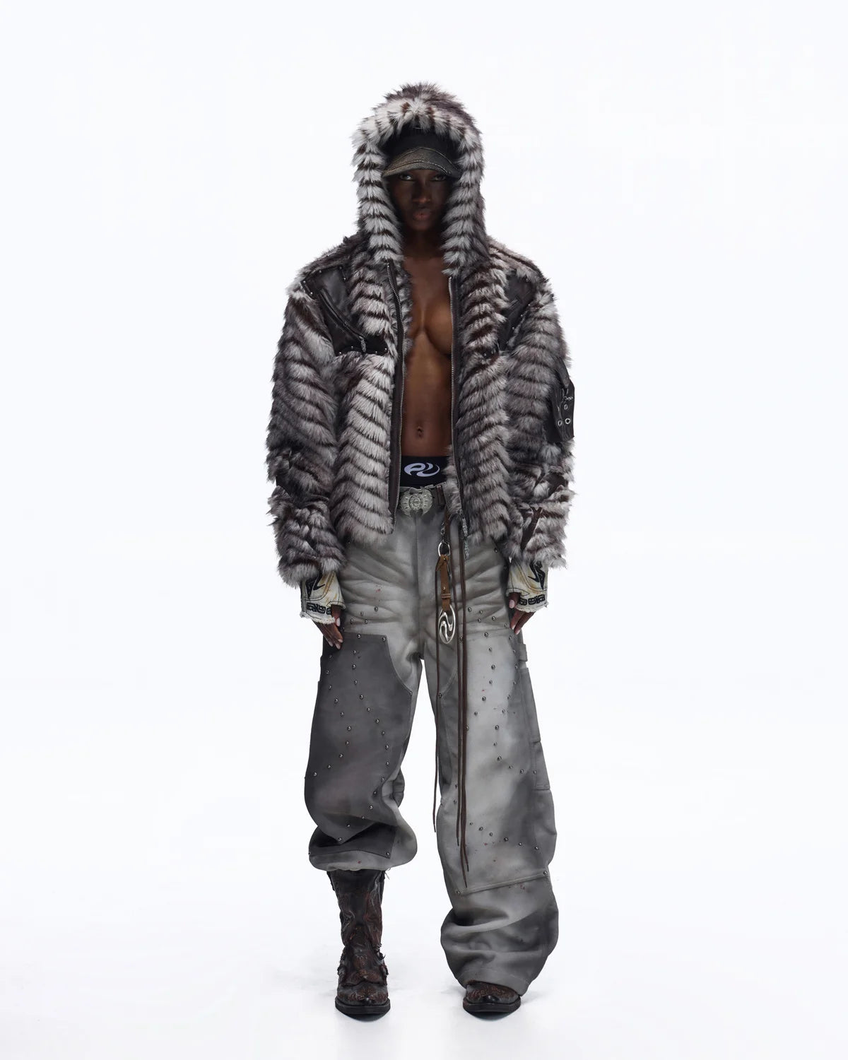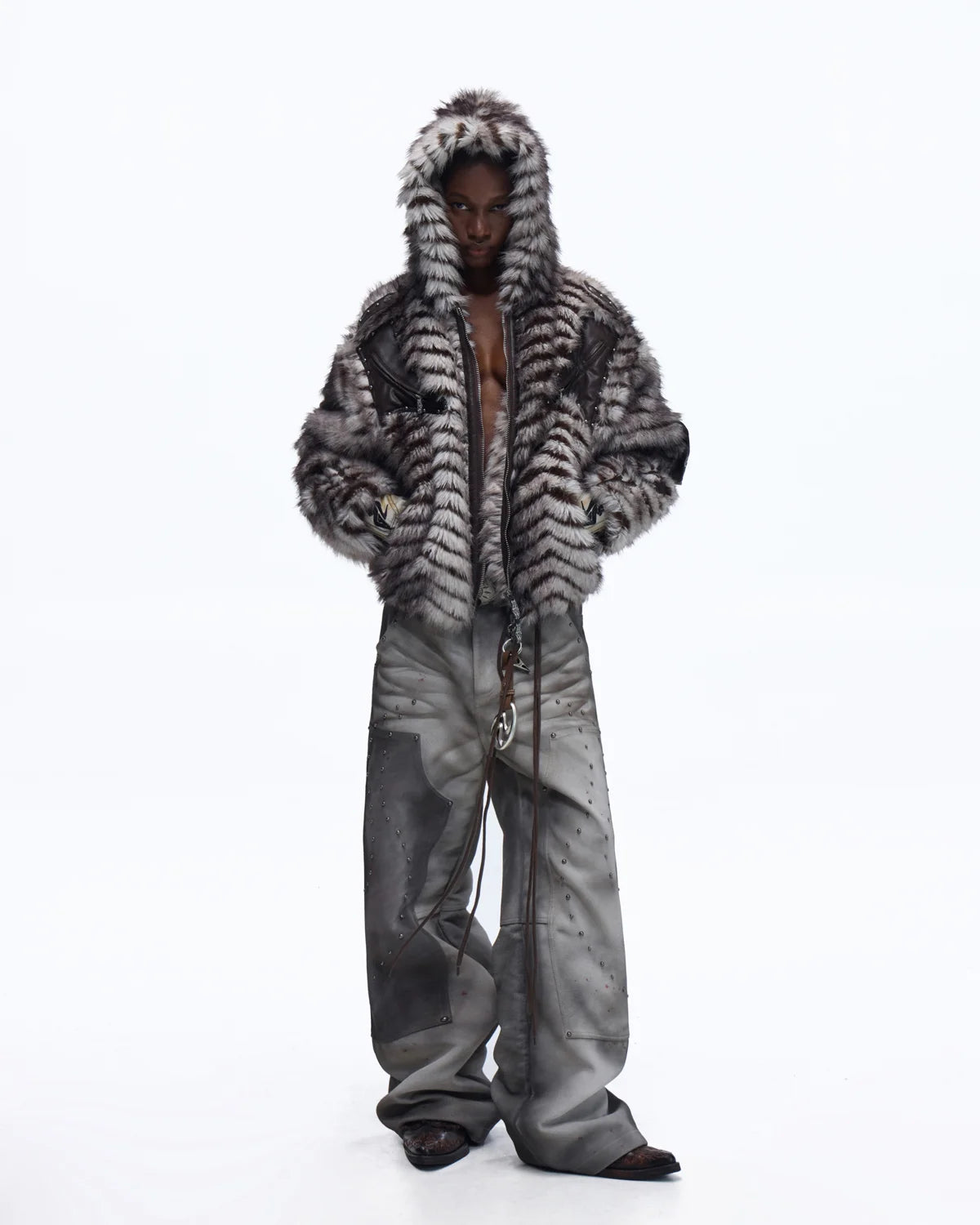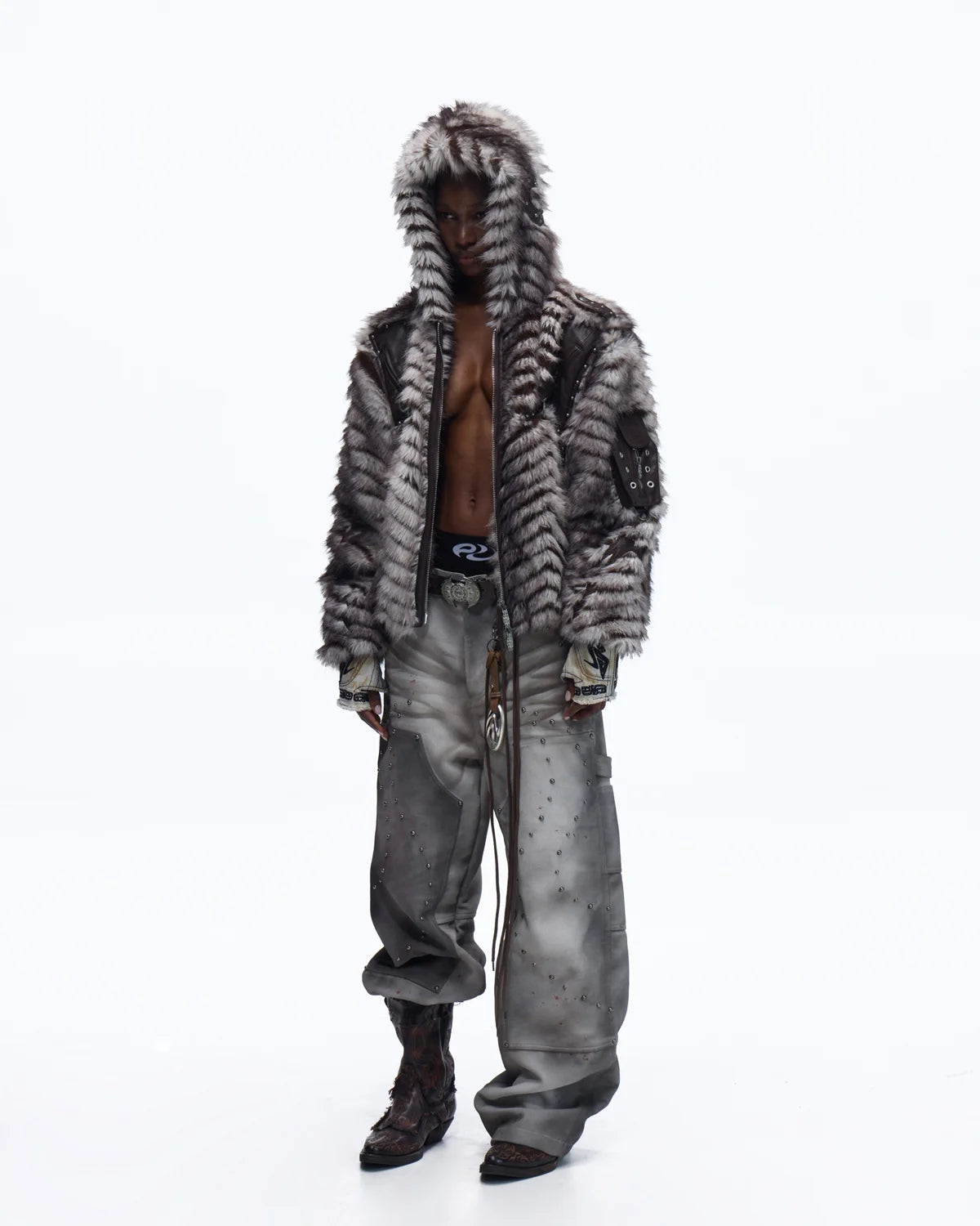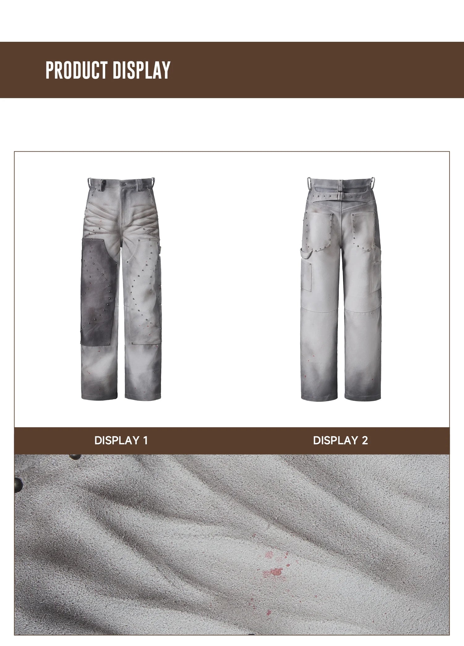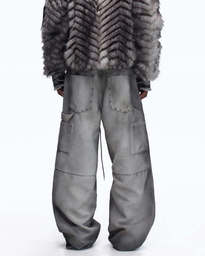 Personsoul Distressed Nubuck & Cowhide with Mushroom Studs Pants(Limited 100 pieces)