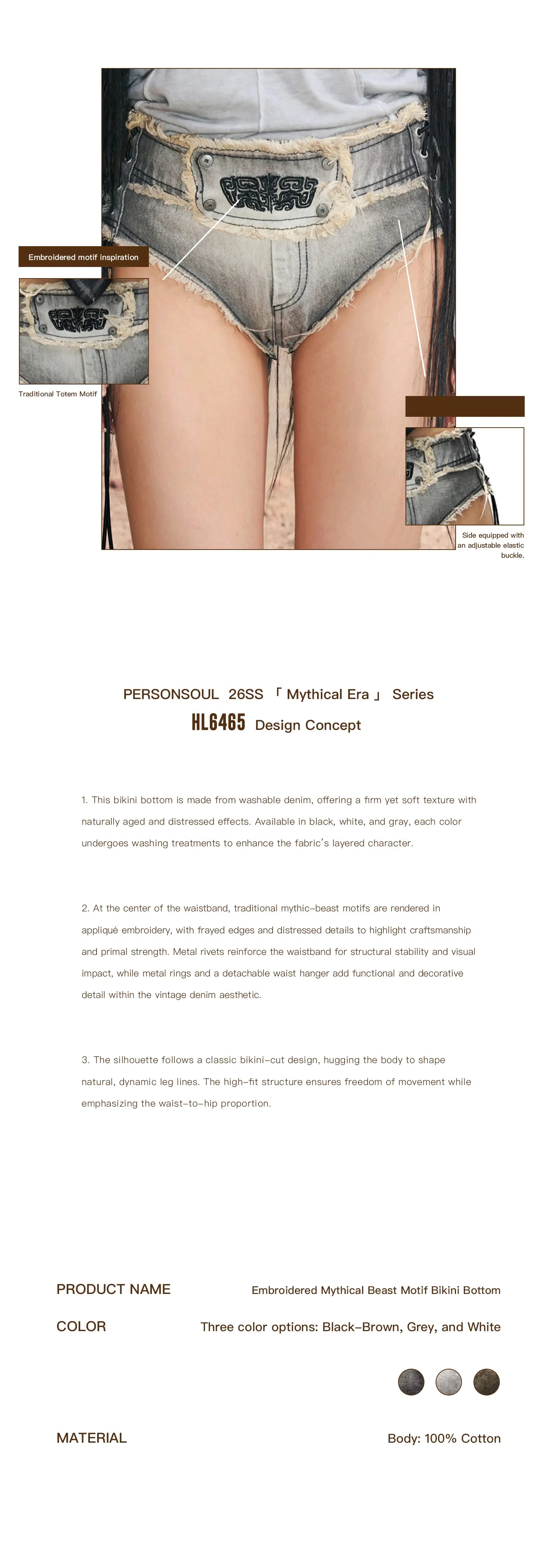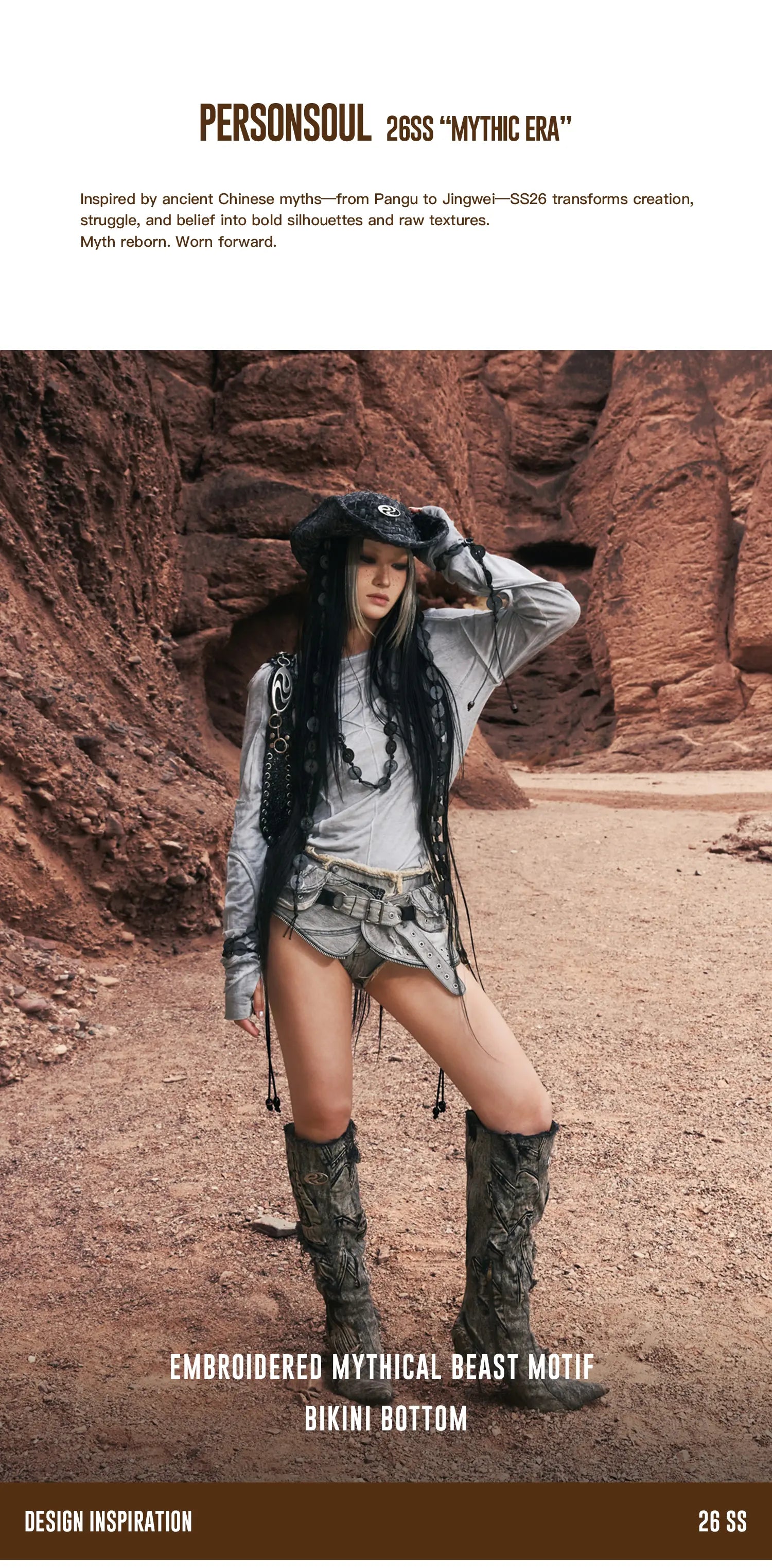 Personsoul Embroidered Mythical Beast Motif Bikini Bottom In Brown