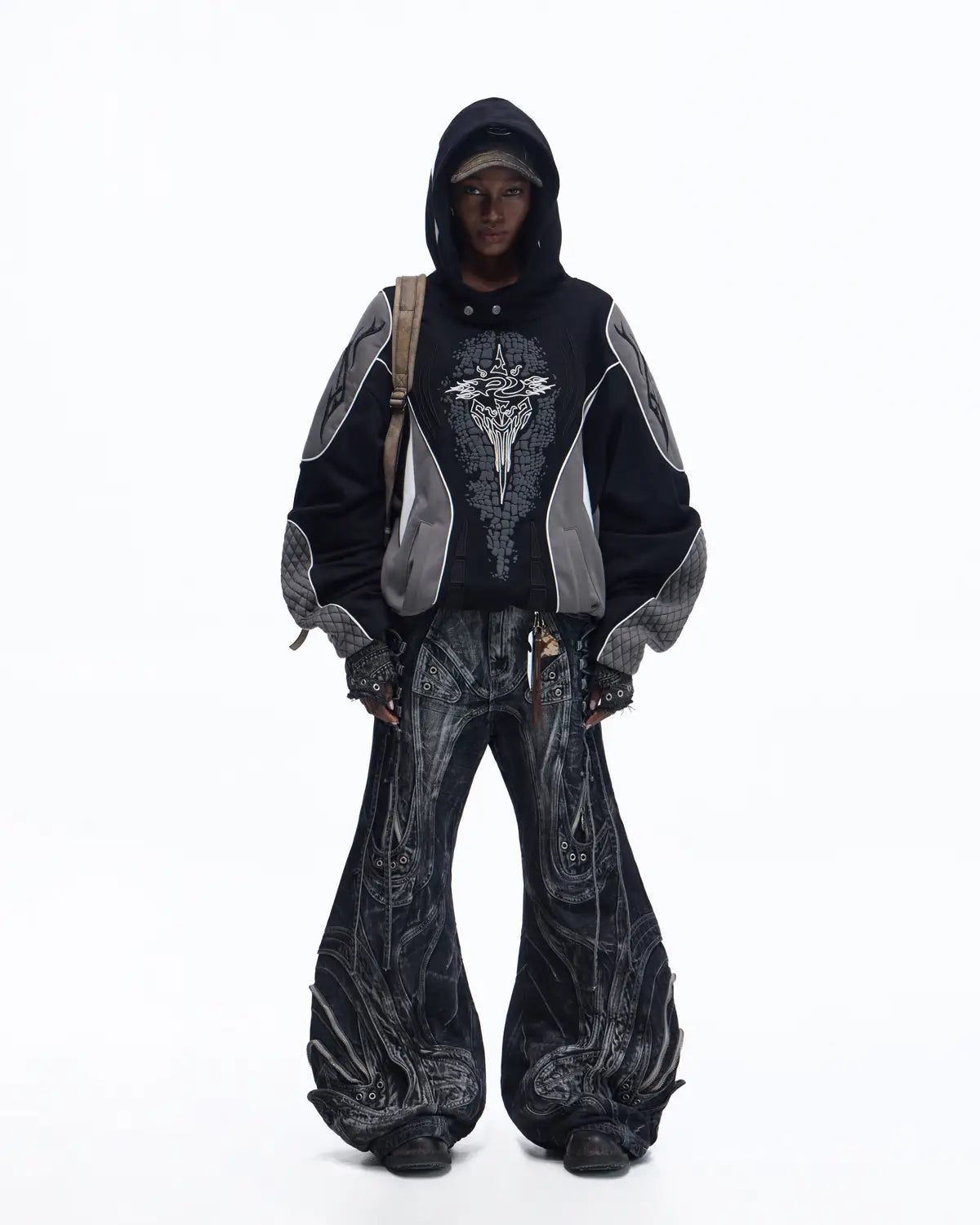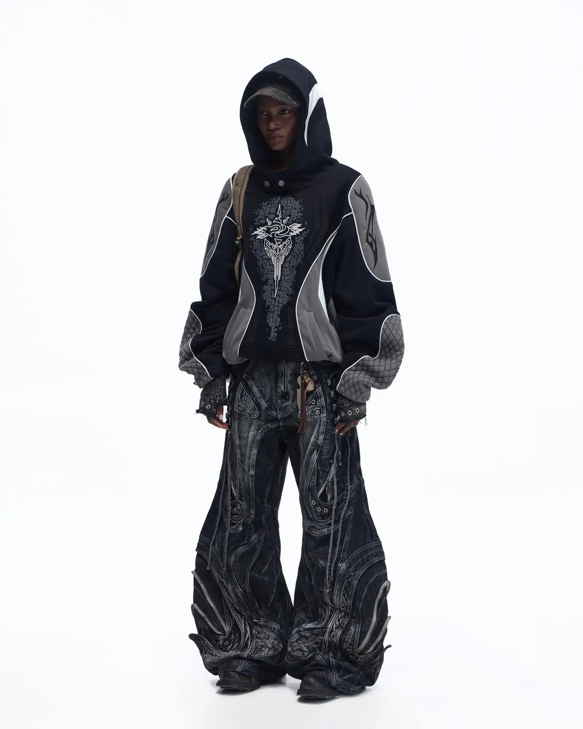 Personsoul Totem Color-Block Racing Hoodie In Black