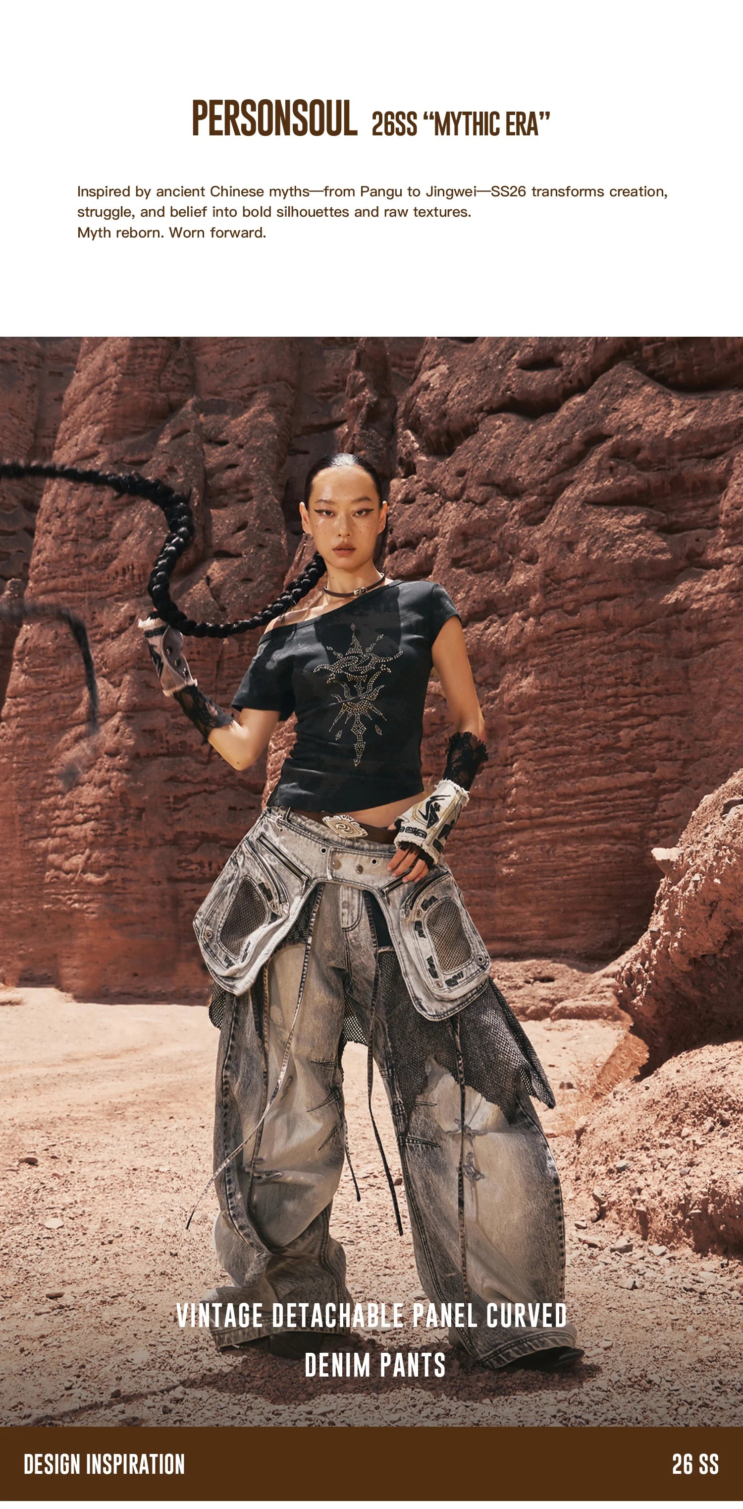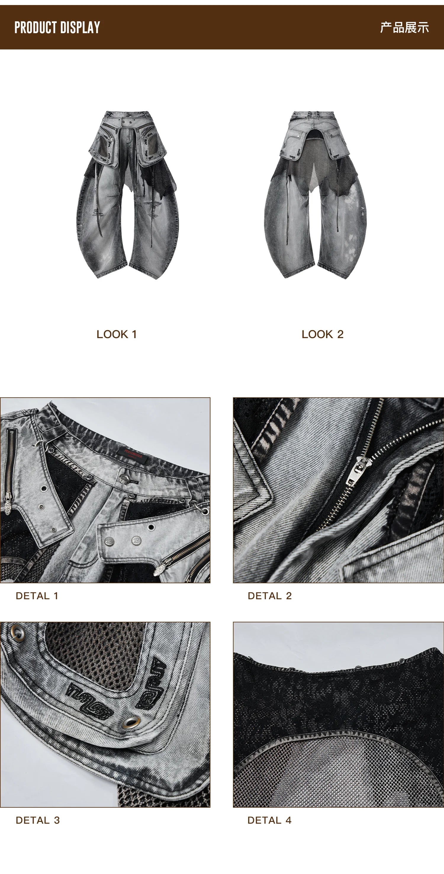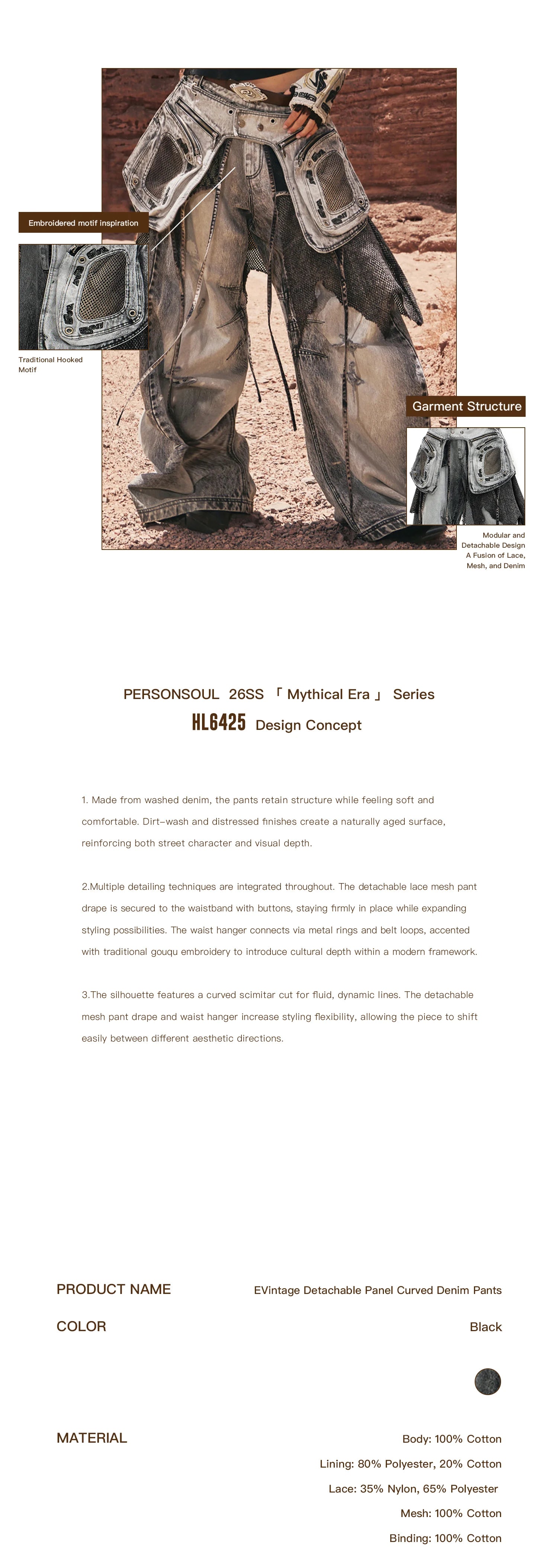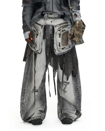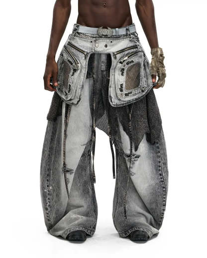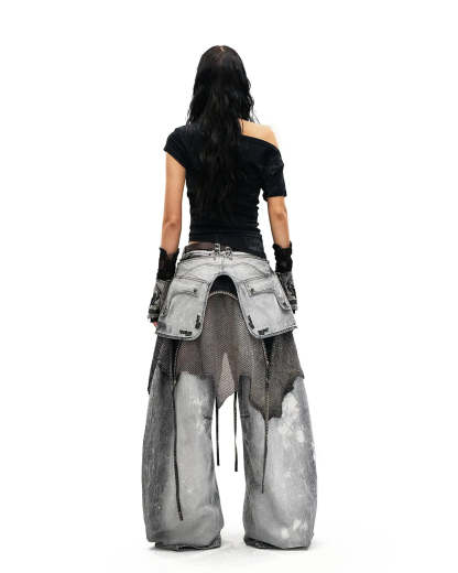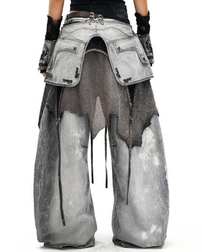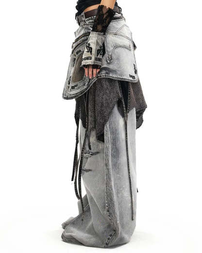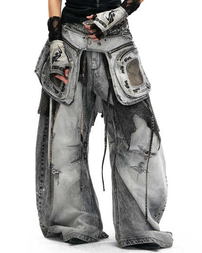 Personsoul Vintage Detachable Panel Curved Denim Jeans