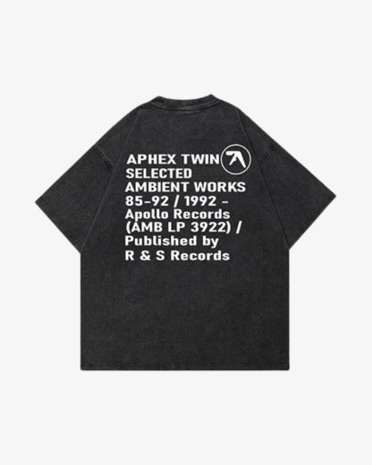 The perfect tee, beautiful Aphex Twin-inspired front and back graphics, breathable fabric, relaxed boxy fit, faded color, unisex for both men and women.